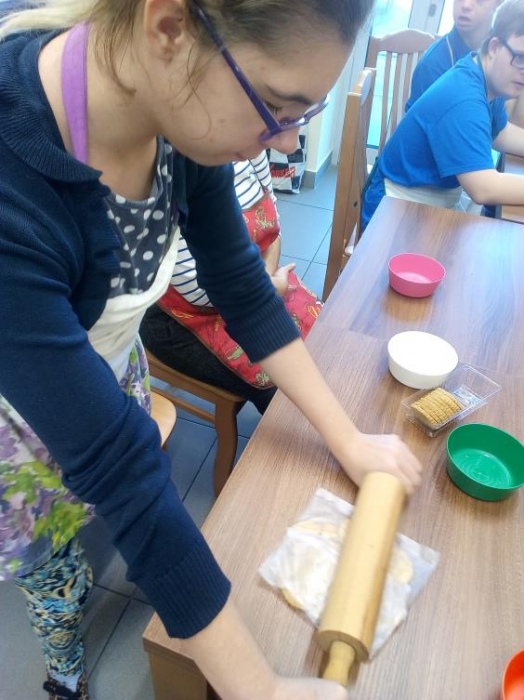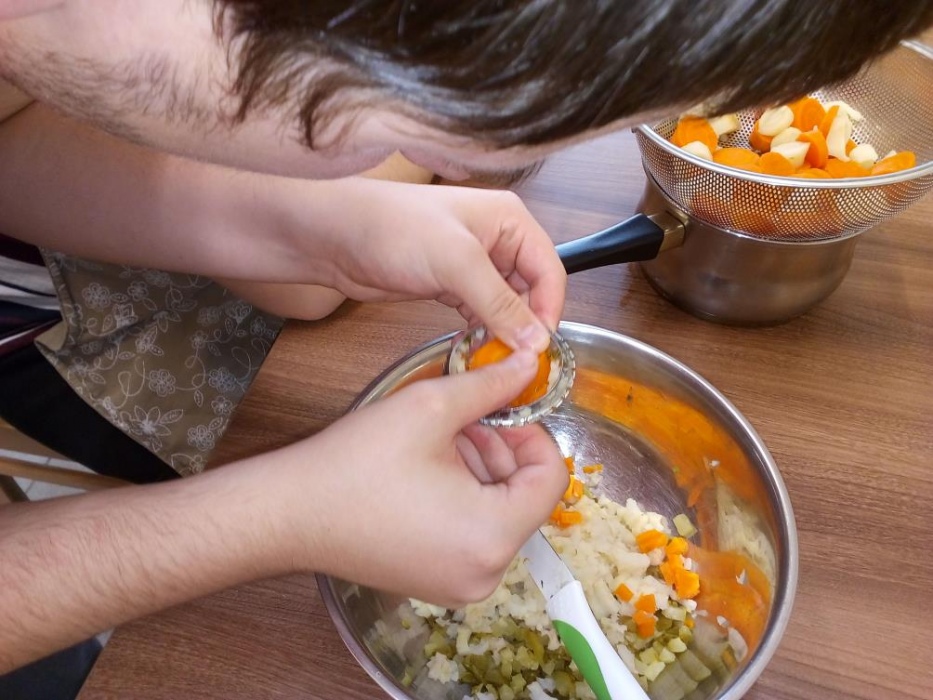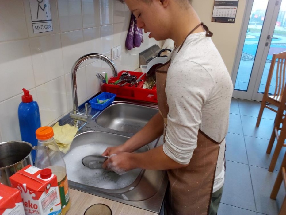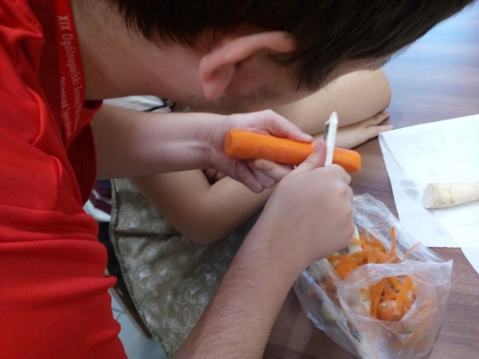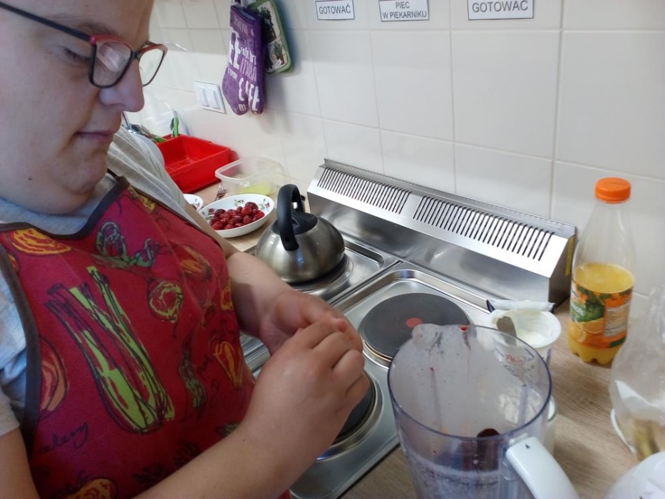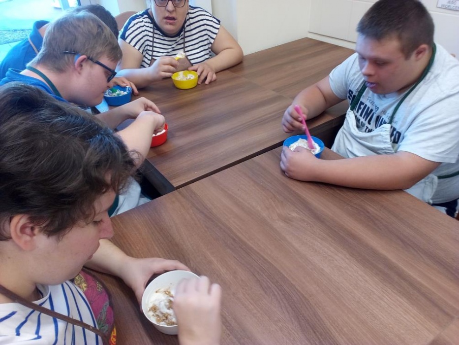 Nasi uczniowie uwielbiają zajęcia w kuchni dydaktycznej, podczas których mogą doskonalić zdobyte już umiejętności kulinarne i ćwiczyć nowe. W październiku poznali przepisy na kolejne kolorowe potrawy, którymi były: sałatka jarzynowa, gofry, leczo i przepyszny deser jabłkowo-jogurtowy. Stale też na naszych zajęciach robimy koktajle, które naszym uczniom wychodzą wybornie. W kuchni dydaktycznie nie tylko przygotowujemy pyszne posiłki, ale także uczymy się, że zawsze należy po sobie zostawić porządek, więc mycie naczyń, to także stały element naszych zajęć. A czy przygotowane posiłki smakują naszym wychowankom możecie zobaczyć na dołączonych zdjęciach.