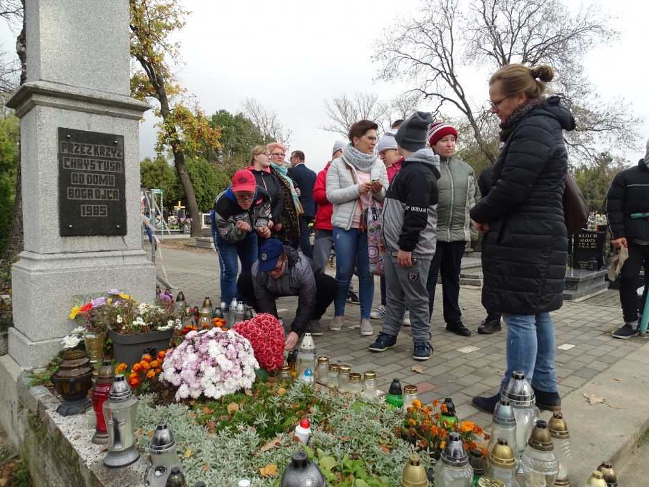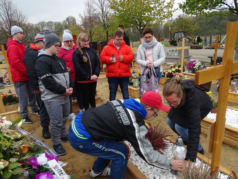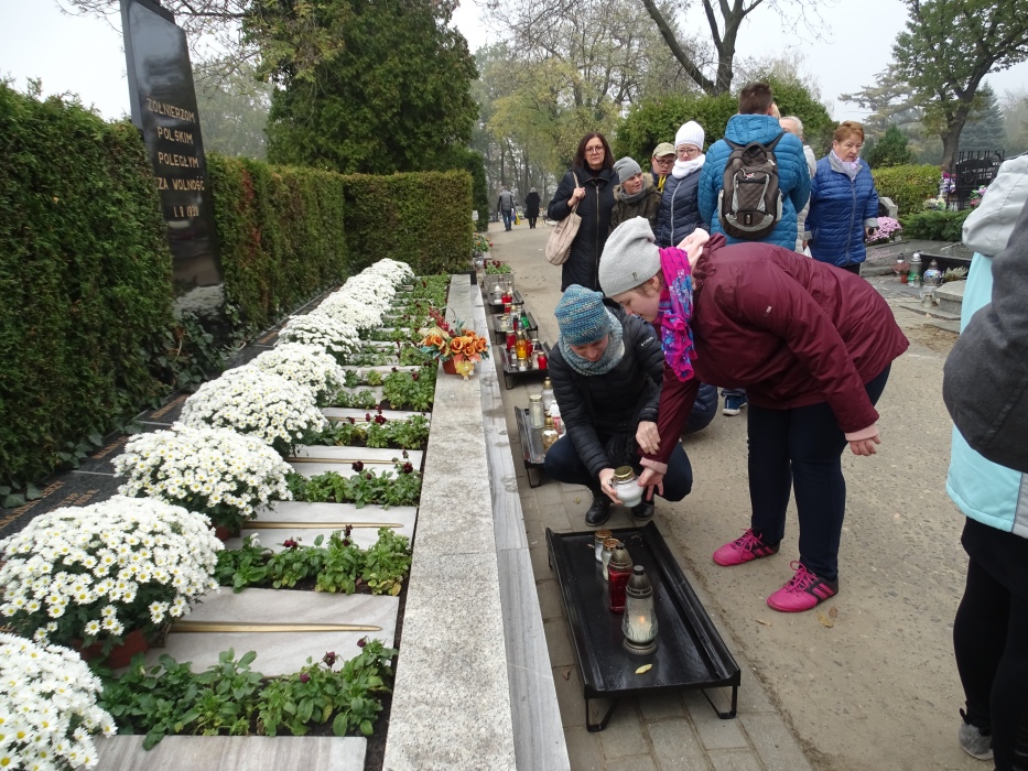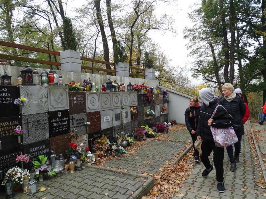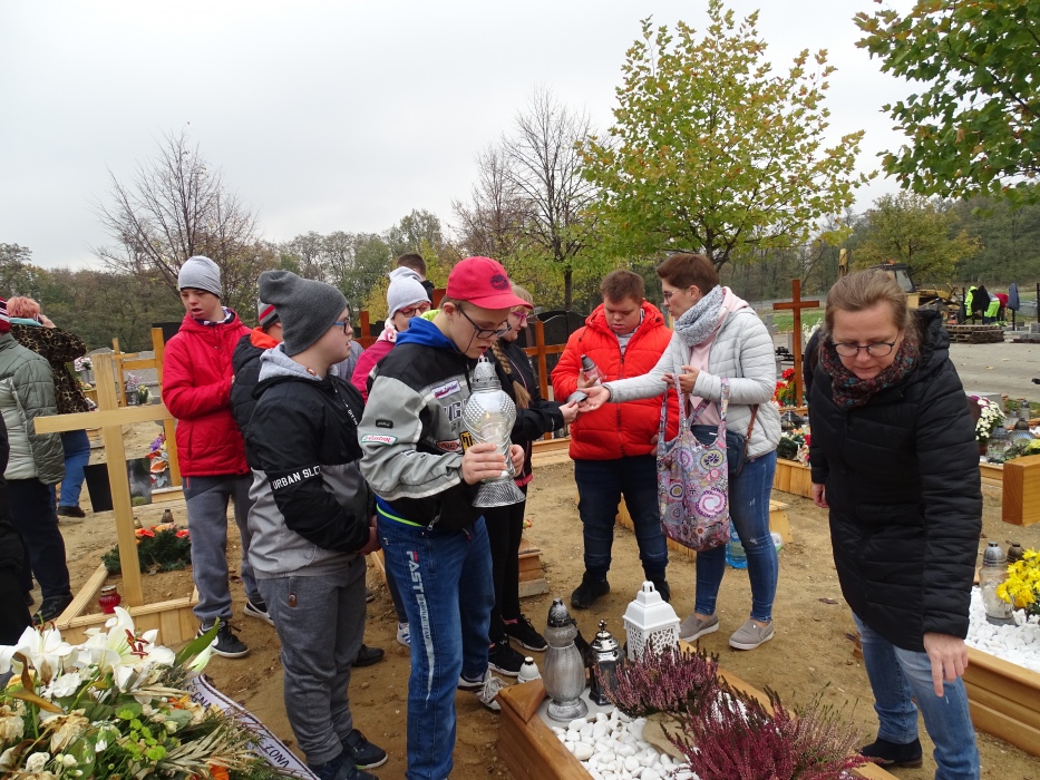 Także i nasi uczniowie złożyli wizytę na rybnickim cmentarzu. Spacerowali cmentarnymi alejami w spokoju i zadumie pochylając się nad grobami, gdzie zapalali znicze....