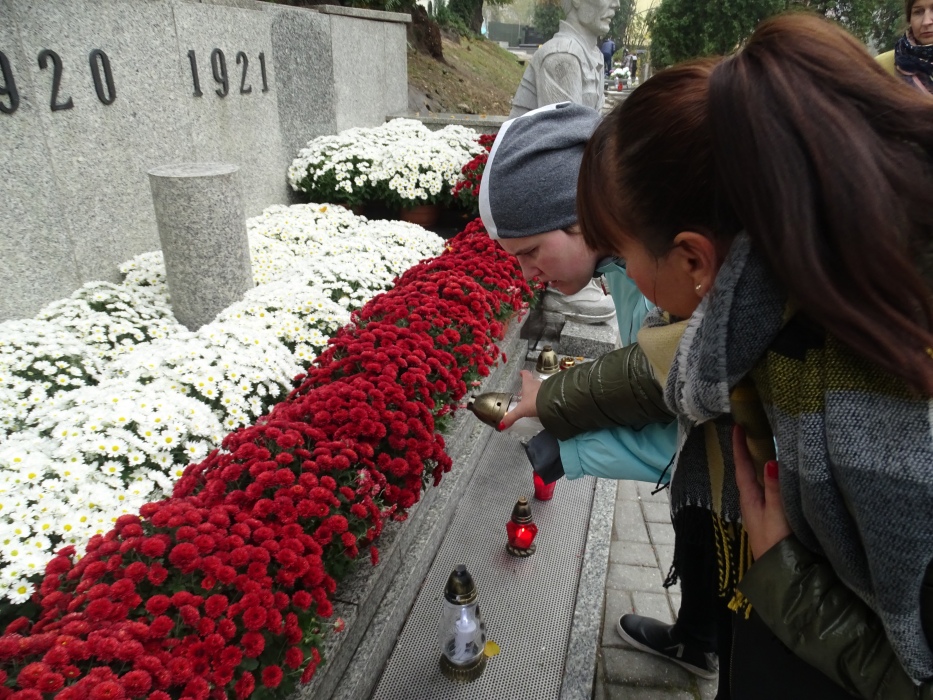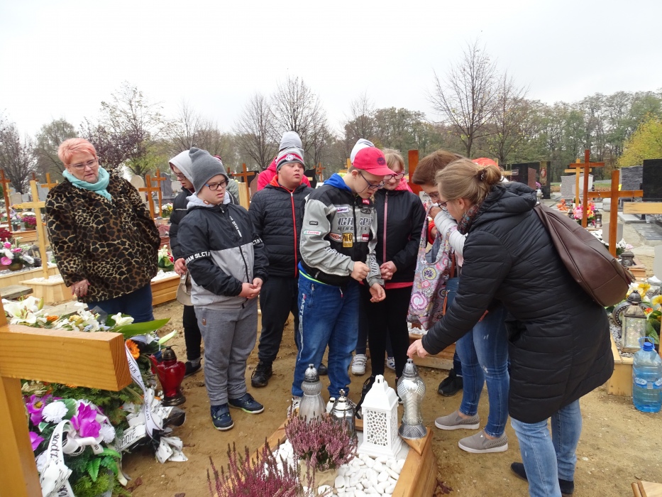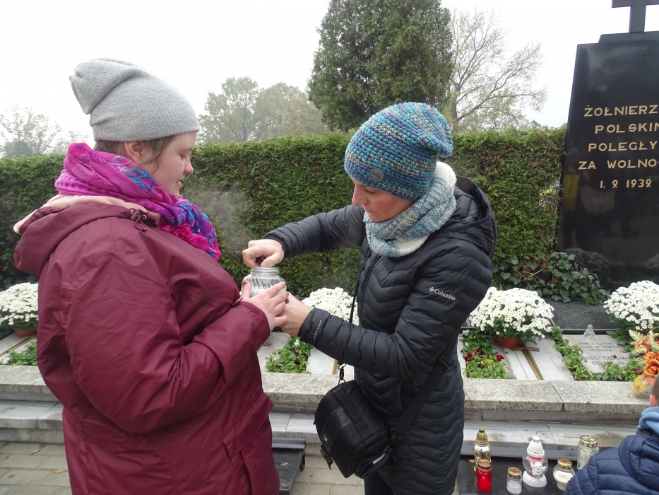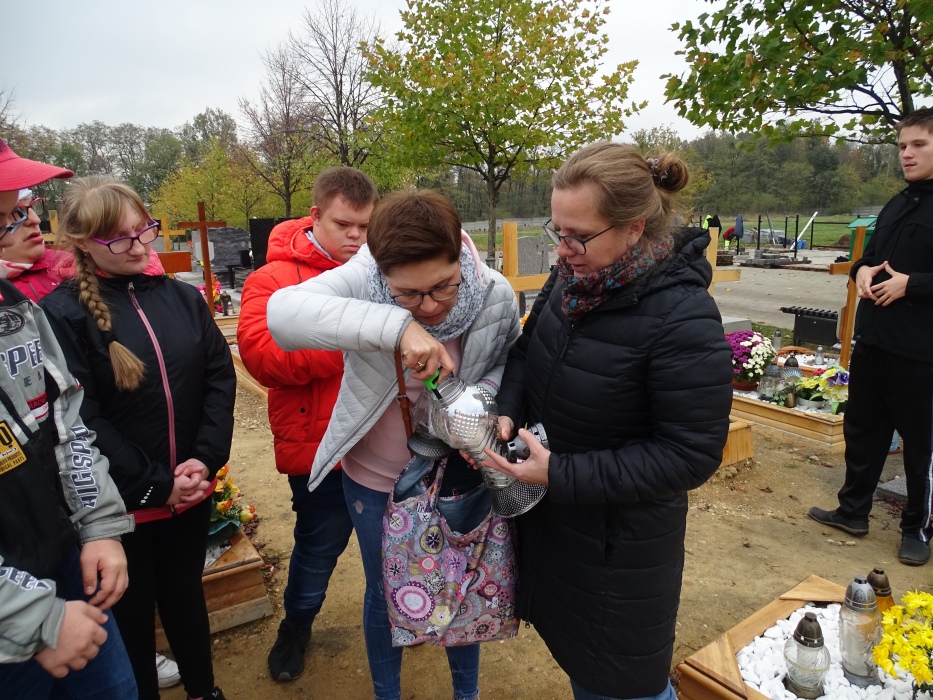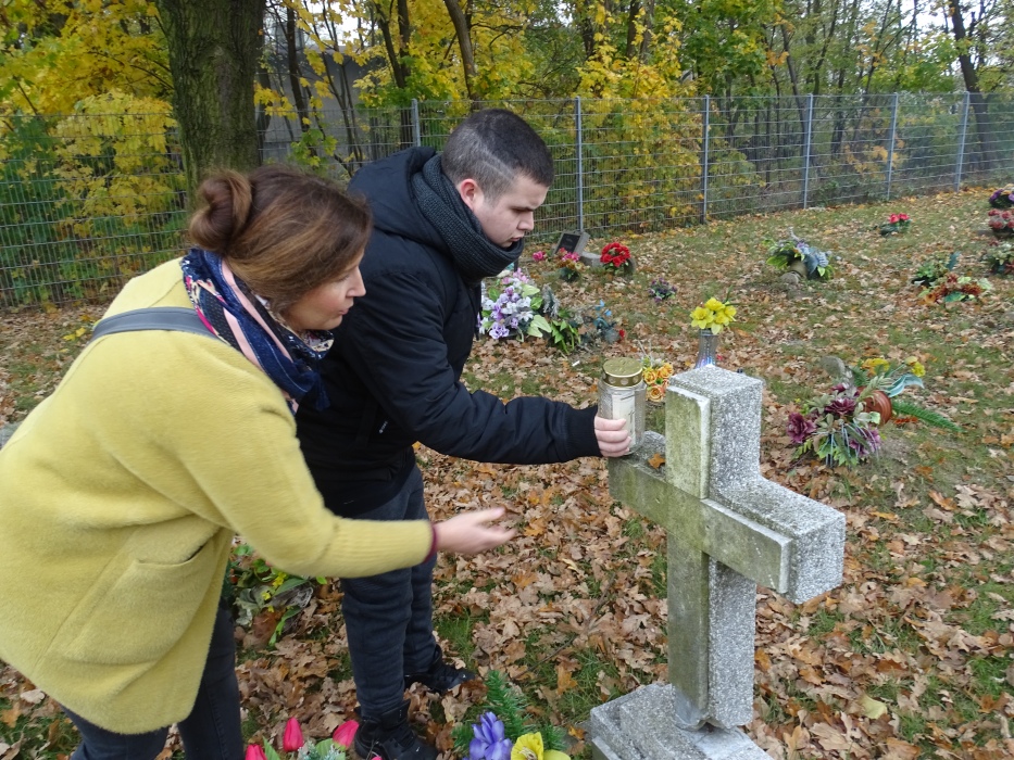 Także i nasi uczniowie złożyli wizytę na rybnickim cmentarzu. Spacerowali cmentarnymi alejami w spokoju i zadumie pochylając się nad grobami, gdzie zapalali znicze....