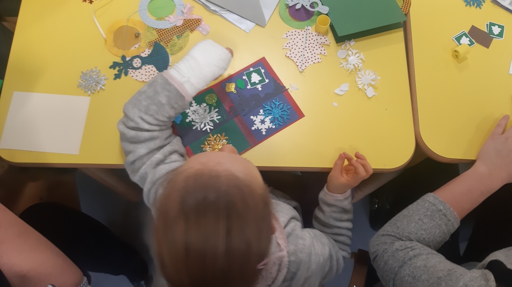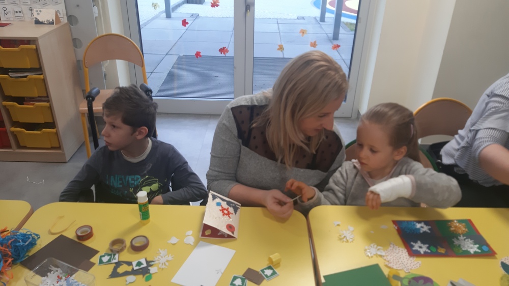 - Warsztaty robienia świątecznych kartek dla rodziców i uczniów