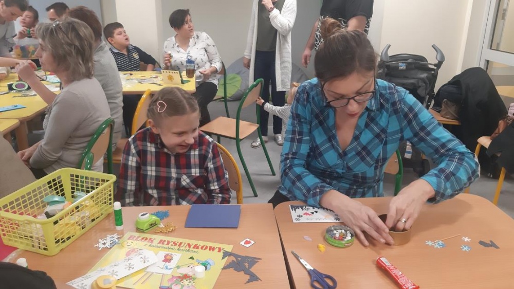 2.12. 2019 r. odbyły się warsztaty świąteczne dla rodziców uczniów klasy Ia, Ib oraz I, II, V oddziału rewalidacyjno – wychowawczego, a także dla rodziców naszych absolwentów, podczas których wykonano kartki bożonarodzeniowe. Po twórczej pracy w świątecznych nastrojach spotkaliśmy się na słodkim poczęstunku.