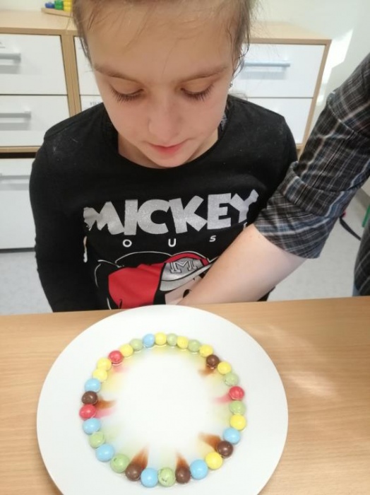 Inspirując się przepiękną tęczą, która niedawno zawitała na rybnickim niebie, nasi uczniowie z kl. IIa i IVb wykonali swoje własne tęcze wykorzystując w tym celu kolorowe lentilki i ciepłą wodę. Eksperyment był bardzo ciekawy, kolorowy, a przy tym smaczny. Wszystko to w ramach cuklicznych zajęć MŁODZI CHEMICY:)