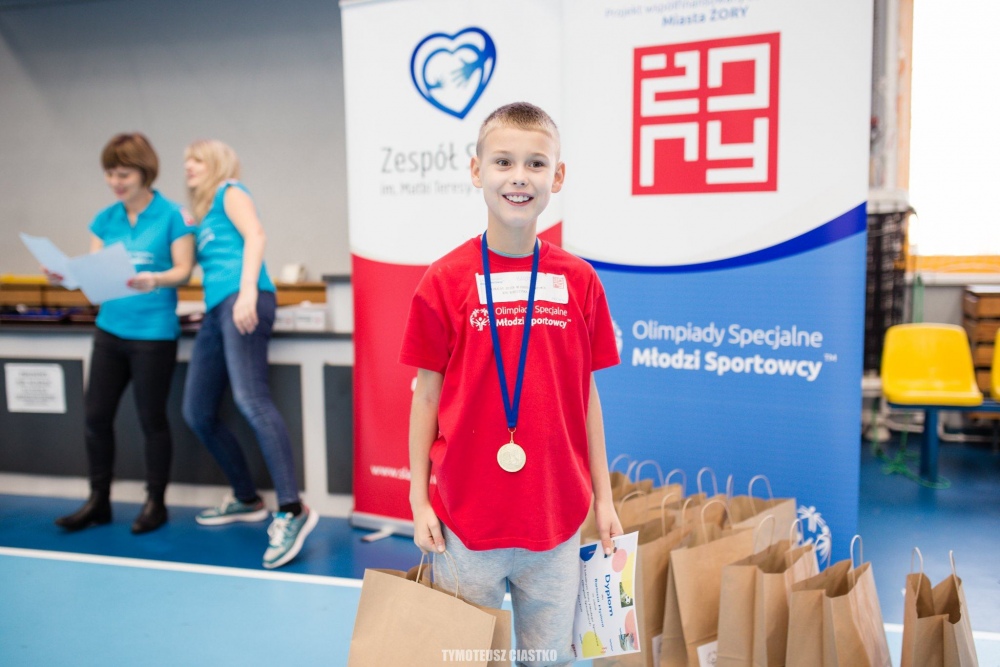 Na zaproszenie Klubu Olimpiad Specjalnych KONICZYNKA z sąsiednich Żor ekipa naszych przedszkolaków wzięła udział w II Lokalnym Dniu Młodego Sportowca Olimpiad Specjalnych 15.11.2019. W żorskiej hali sportowej MOSiR-u najmłodsi sportowcy z kilku klubów mieli okazję sprawdzić się w szeregu konkurencjach nawiązujących, między innymi, do kolarstwa, koszykówki i piłki nożnej. Podsumowali tym samym cykl zajęć sportowych. Ich zmagania zostały uhonorowane medalem, dyplomem i upominkiem:)
