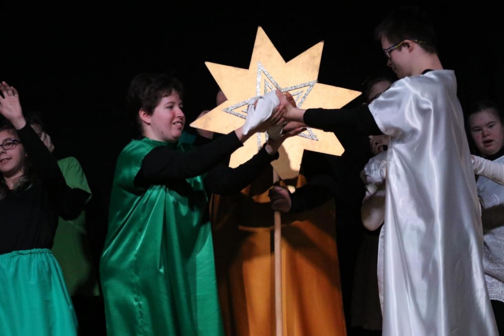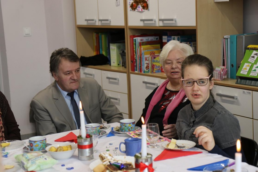31 styczeń 2020 r. był w naszej szkole dniem pełnym radości, ciepła i wzruszeń... Tego dnia bowiem, obchodziliśmy, niezwykle uroczyście, DZIEŃ BABCI I DZIADKA. Licznie zabrani na auli, jakże ważni dla naszych przedszkolaków i uczniów, GOŚCIE mieli okazję obejrzeć przedstawienie jasełkowe w wykonaniu naszych uczniów - członków Zespołu BAJ, wysłuchać wielu ciepłych słów, życzeń, zarówno z ust uczniów, jak i pani dyrektor Agnieszki Antosz. Nie zabrakło okolicznościowych utworów muzycznych wspartych gestami MAKATON oraz instrumentalnych z akompaniamentem naszych uczniów. Po uroczystości był czas na poczęstunek, rozmowę z wnukami i wręczenie przygotowanych przez dzieci i młodzież upominków.
