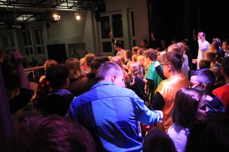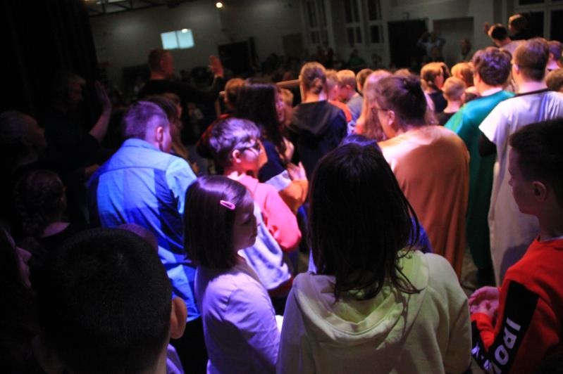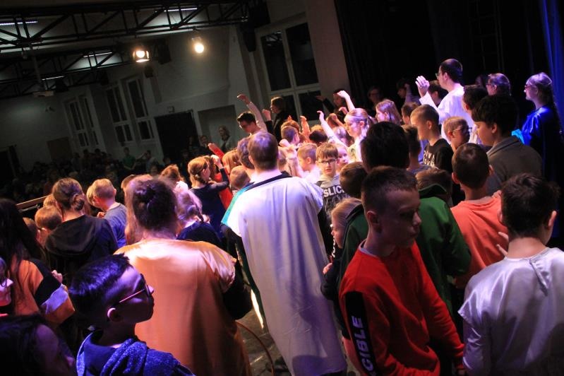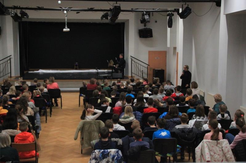 w Ligockiej Kuźni. Wydarzenie to było możliwe, dzięki zaangażowaniu Dyrektora Mieczysława Błaszczyka, który umożliwił nam przyjazd oraz zaprosił na widownię uczniów Szkoły Podstawowej Nr 4 im. Jana Pawła II.