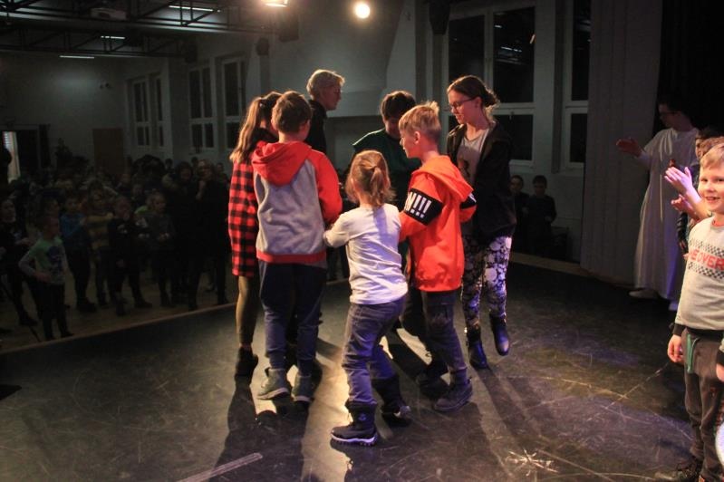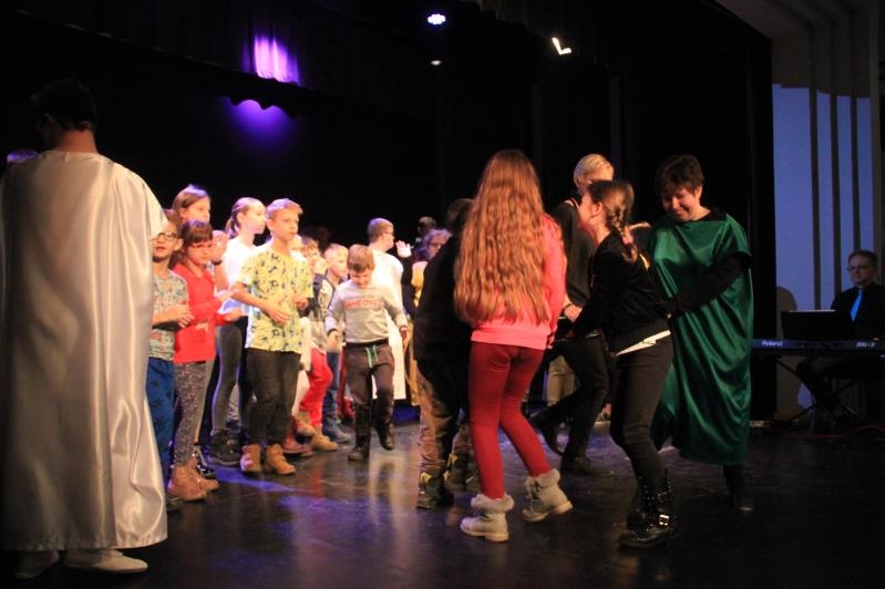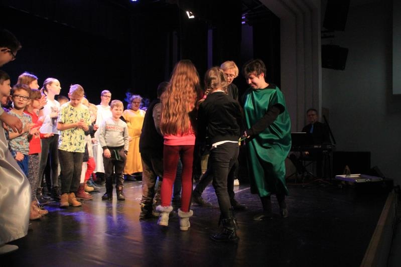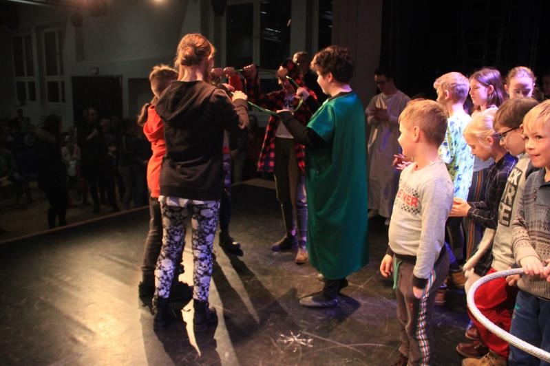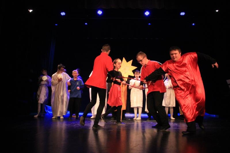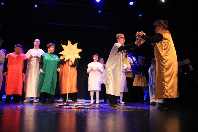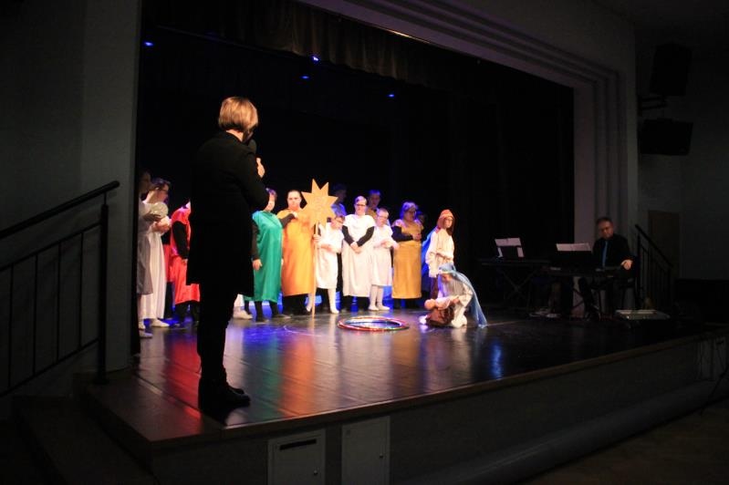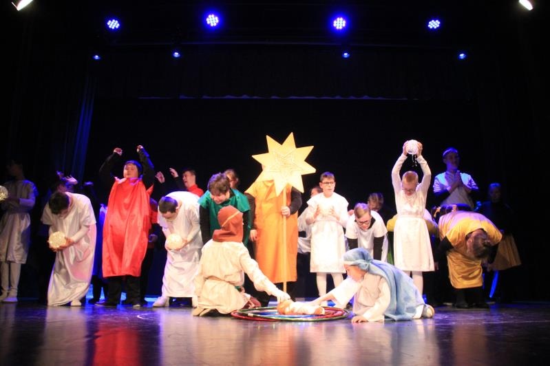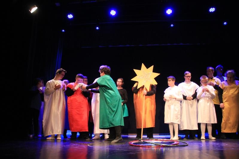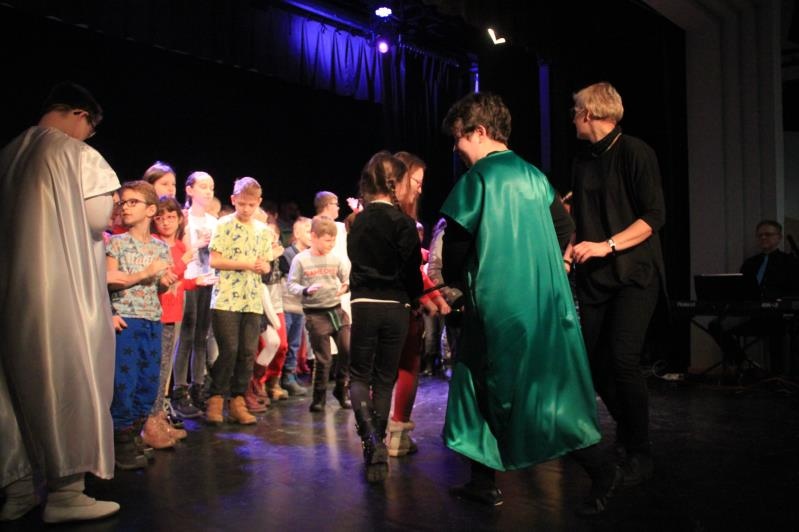 Zespół BAJ zaprezentował spektakl jasełkowy ,,Przyjdźcie – odnajdziecie, czego pragniecie”. Po występie, wszyscy wzięli udział w działaniach muzyczno – ruchowych.