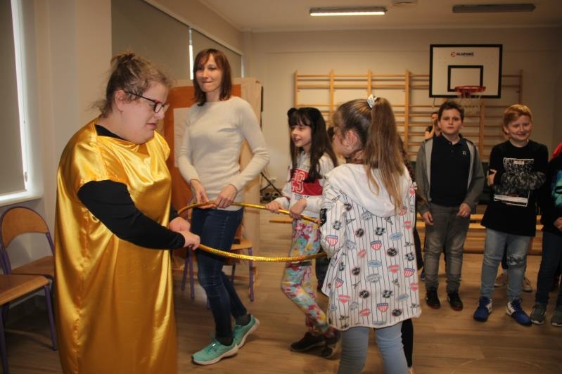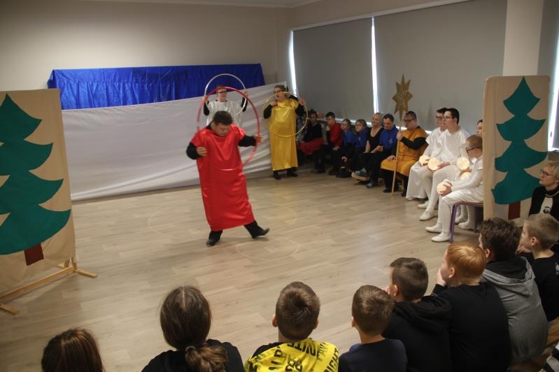 3 lutego 2020 roku, odbyło się spotkanie integracyjne ,,Oswoić niepełnosprawność”. Naszą szkołę odwiedzili uczniowie klasy V Szkoły Podstawowej z Gaszowic. Wizytę rozpoczęli od zapoznania się z naszą placówką. W tym czasie do występu przygotował się Zespół BAJ, który wystąpił ze spektaklem jasełkowym ,,Przyjdźcie – odnajdziecie, czego pragniecie”. Następnie wszyscy wzięli udział w konkursie ,,Jaka to kolęda?” oraz nauczyli się finałowej piosenki z wykorzystaniem gestów komunikacji alternatywnej Makaton. Bardzo dziękujemy za mile spędzony czas i mamy nadzieję, na kolejne spotkanie.