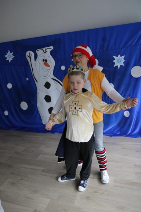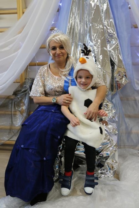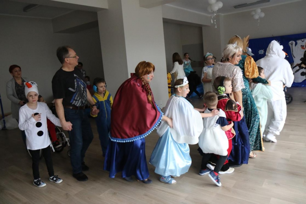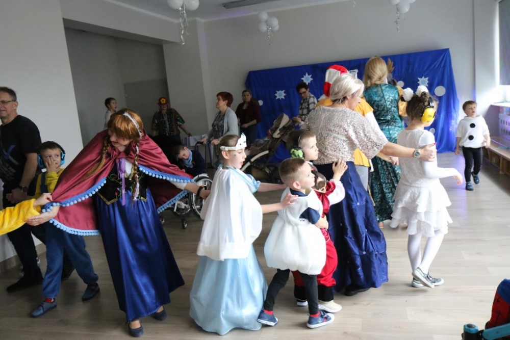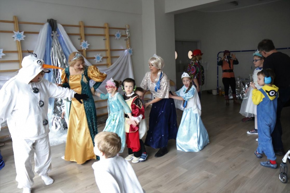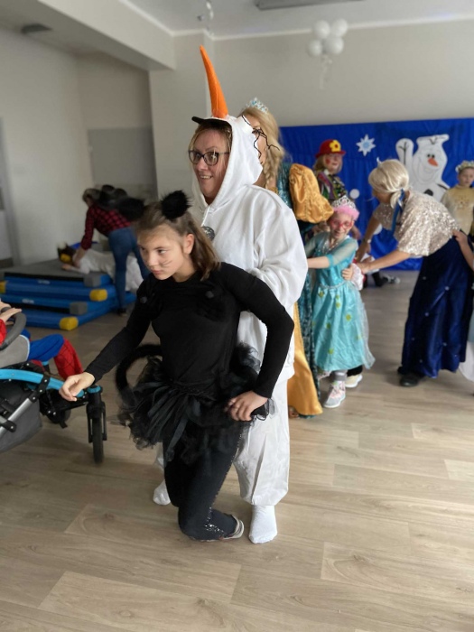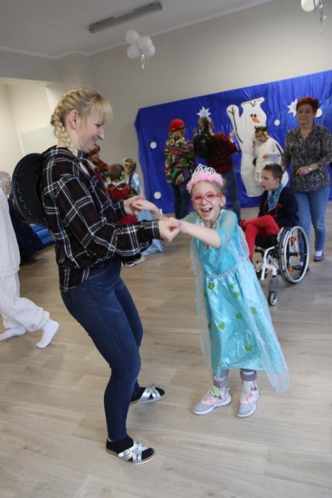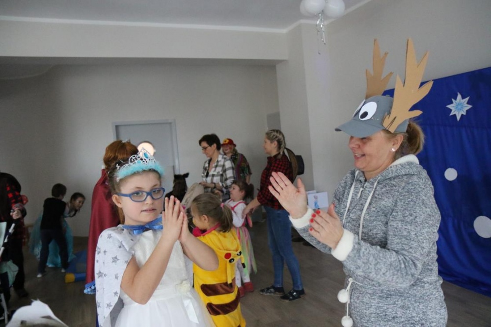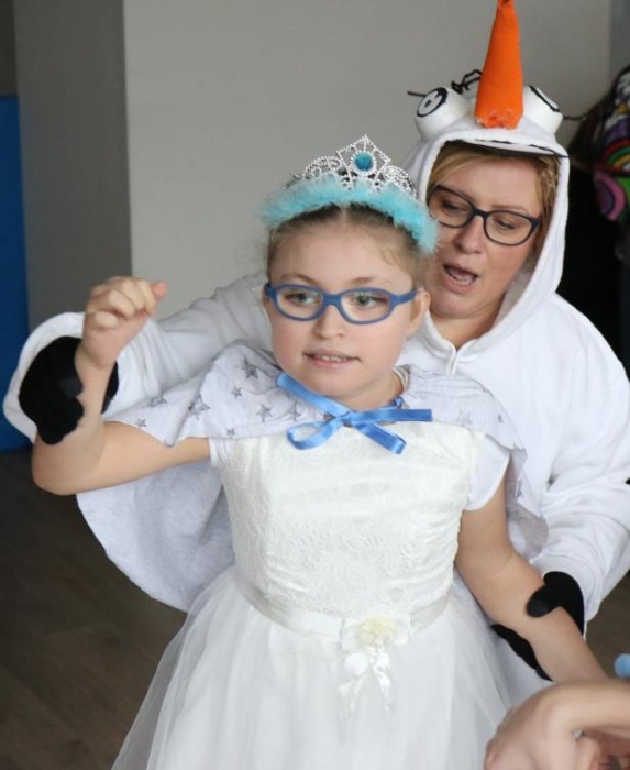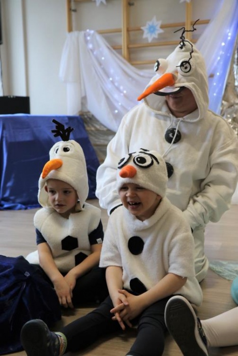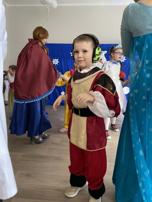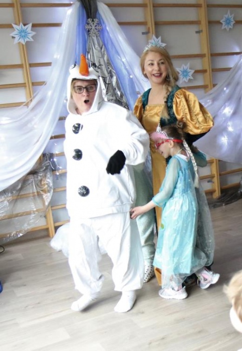 Na bal dzieci, a także pracownicy szkoły przybyli w przepięknych, kolorowych i bajecznych strojach. Wśród uczestników nie mogło zabraknąć tematycznych postaci z Elsą, Anną, Svenem i Olafem na czele! Przybyłych gości przywitała Elsa, zapraszając wszystkich do zimowych zabaw. Nie zabrakło "lodowego poczęstunku" oraz pląsów przy muzyce, wśród których dominowały ulubione hity z bajki "Mam tę moc", "Ulepimy dziś bałwana":) Było wesoło, a gorąca atmosfera ogrzała nie tylko mroźny zamek, ale i całą krainę;)