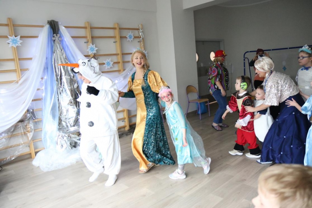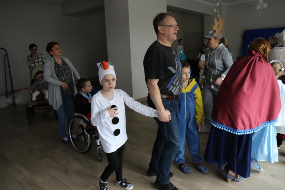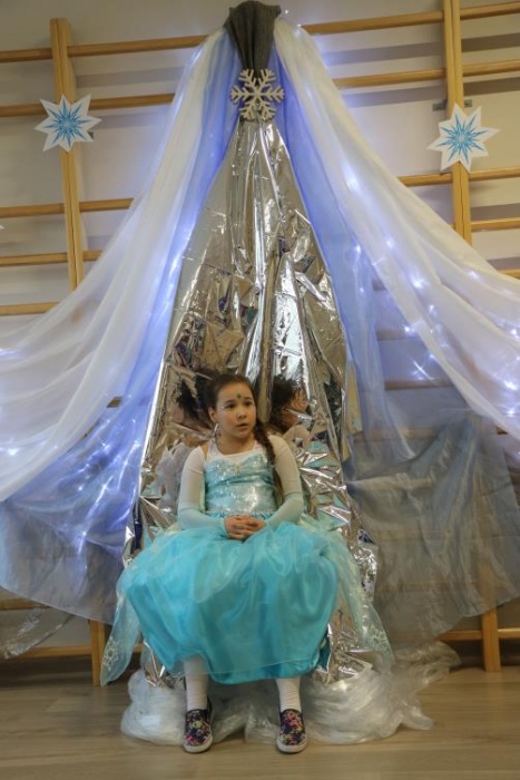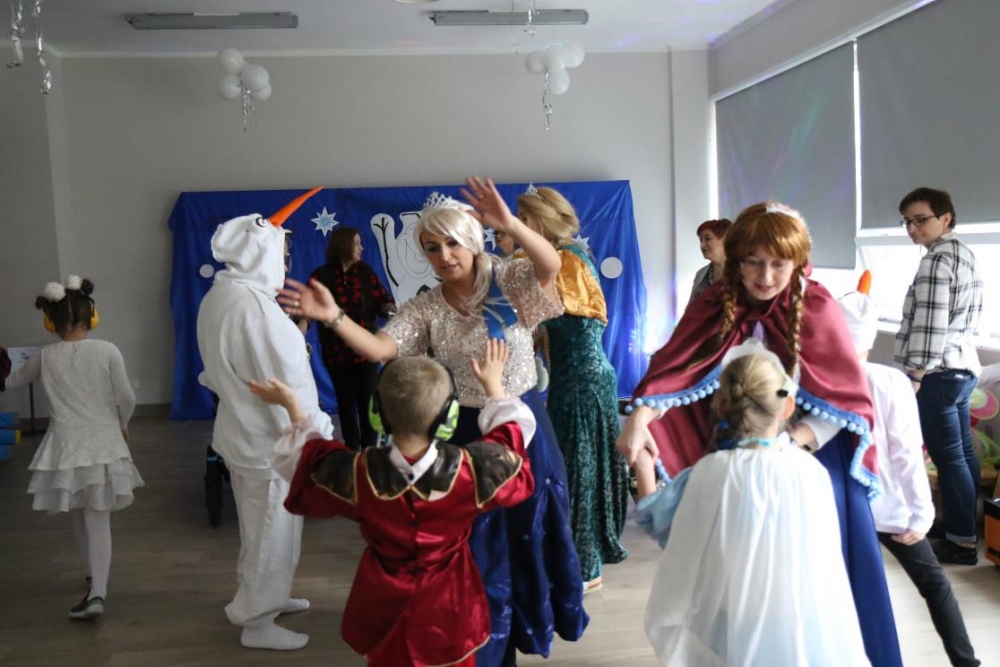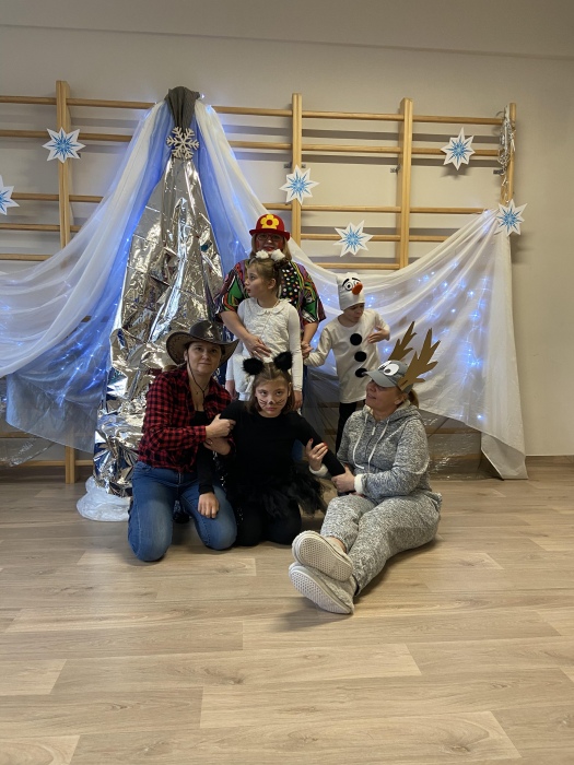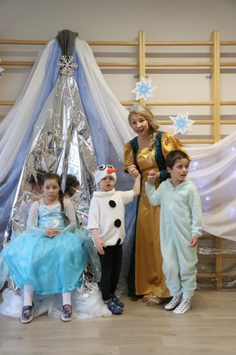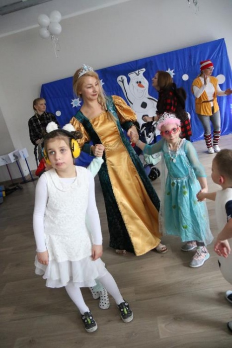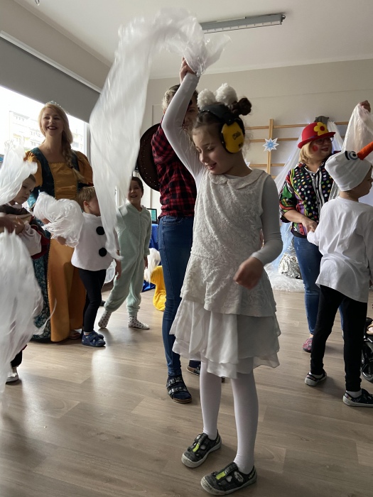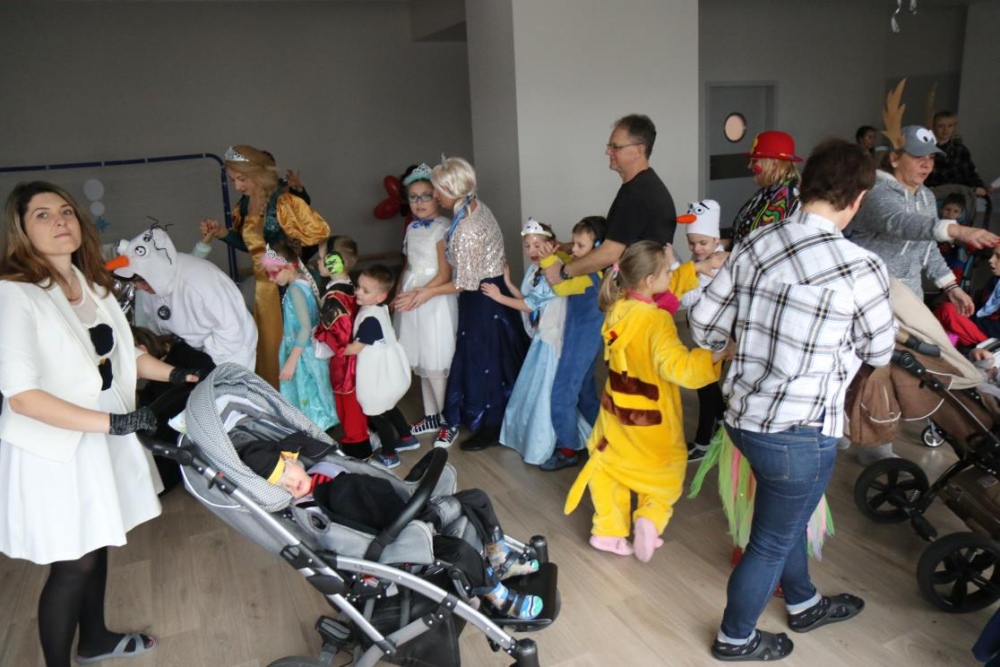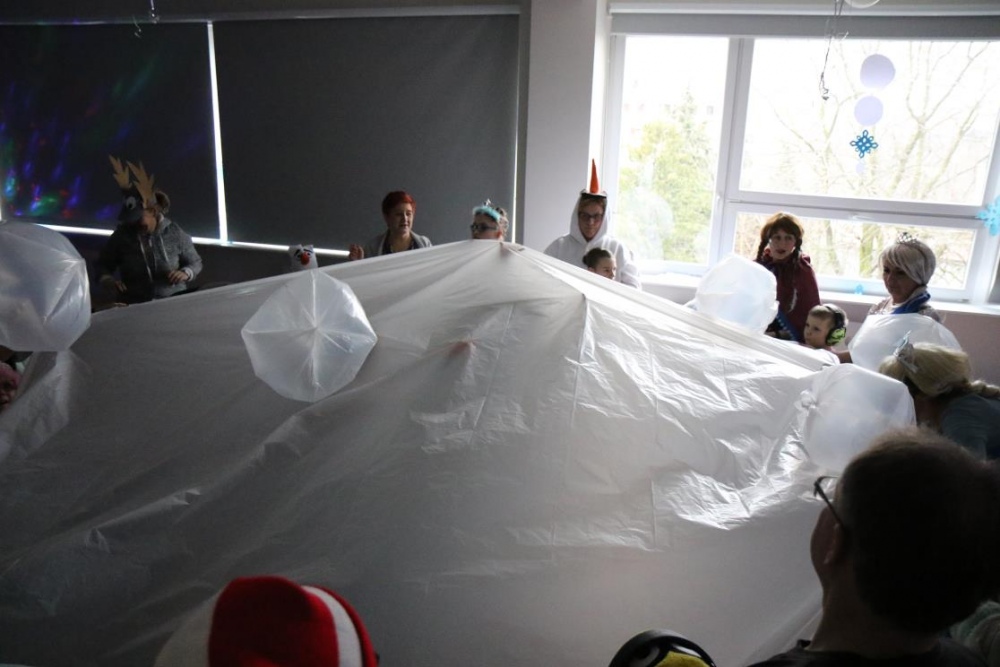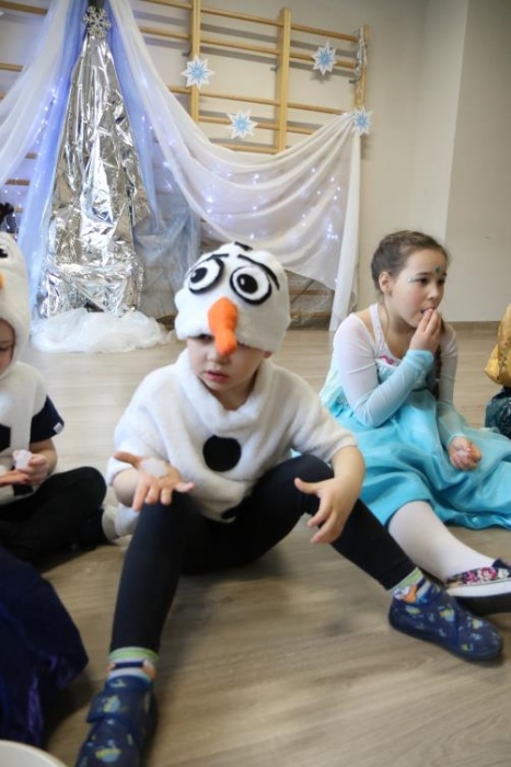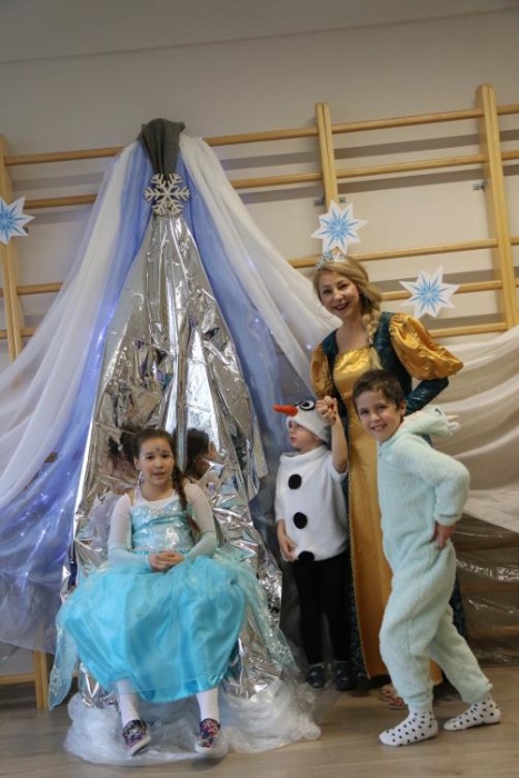 Na bal dzieci, a także pracownicy szkoły przybyli w przepięknych, kolorowych i bajecznych strojach. Wśród uczestników nie mogło zabraknąć tematycznych postaci z Elsą, Anną, Svenem i Olafem na czele! Przybyłych gości przywitała Elsa, zapraszając wszystkich do zimowych zabaw. Nie zabrakło "lodowego poczęstunku" oraz pląsów przy muzyce, wśród których dominowały ulubione hity z bajki "Mam tę moc", "Ulepimy dziś bałwana":) Było wesoło, a gorąca atmosfera ogrzała nie tylko mroźny zamek, ale i całą krainę;)