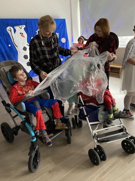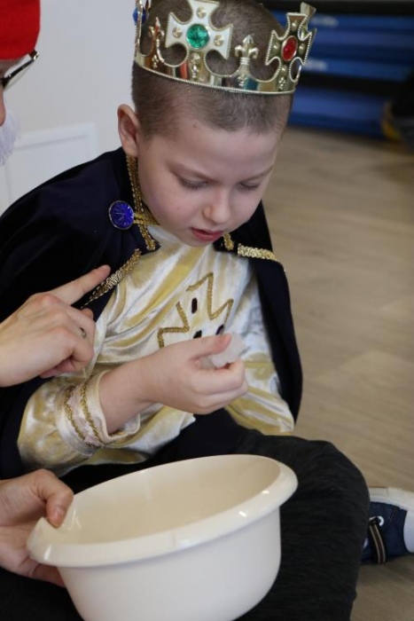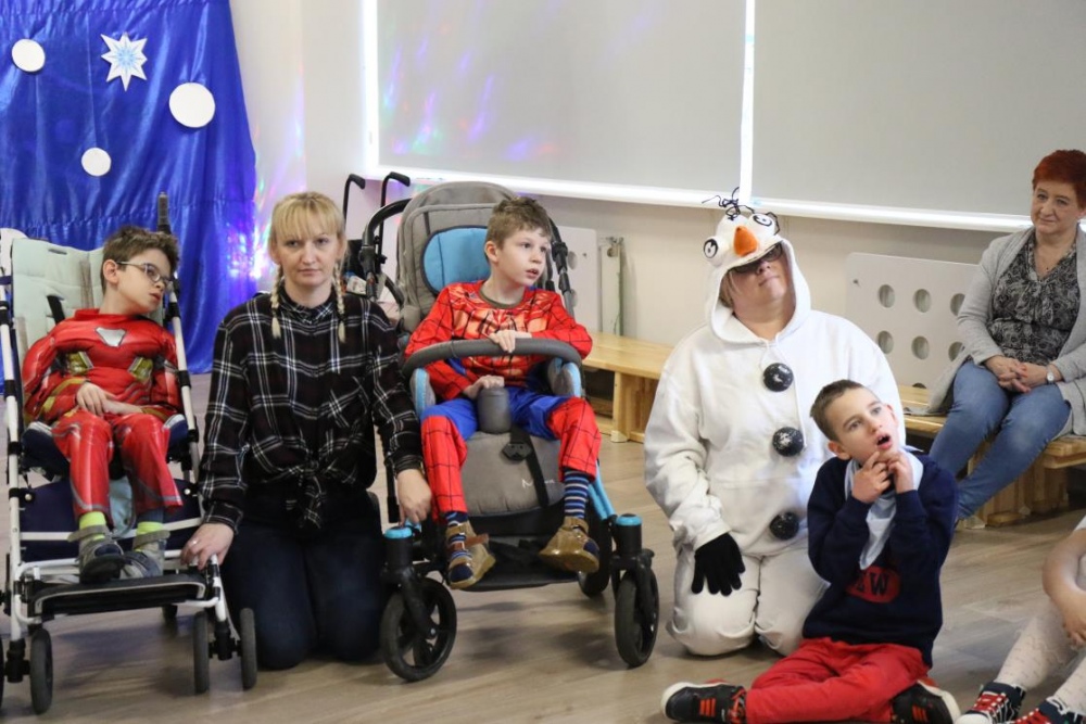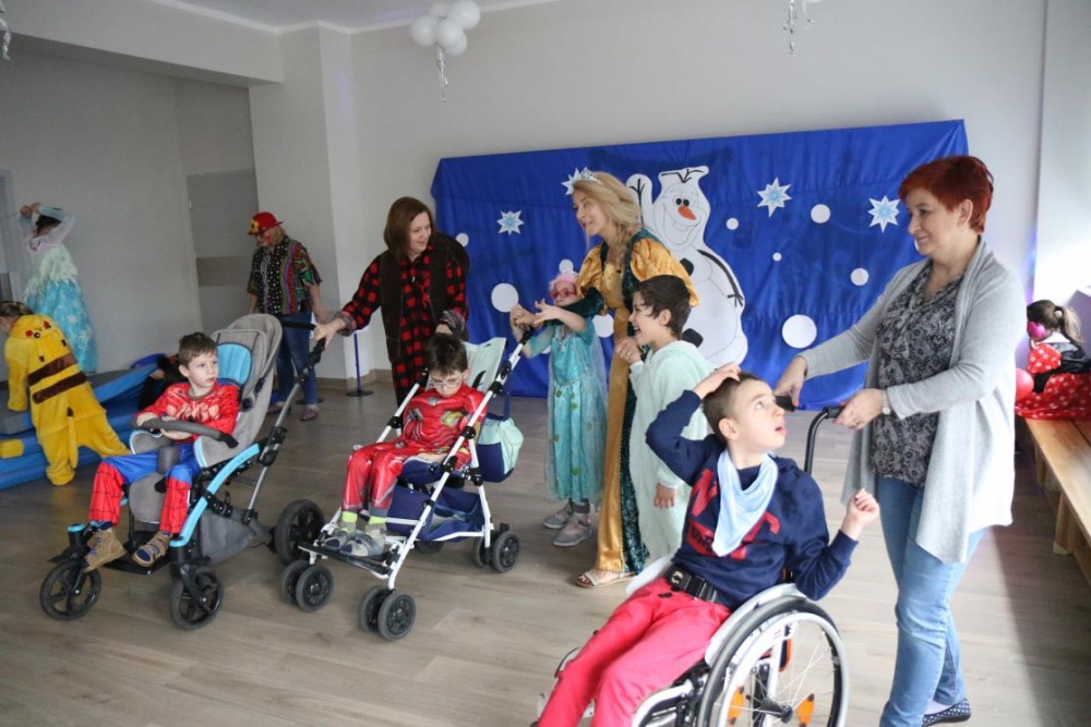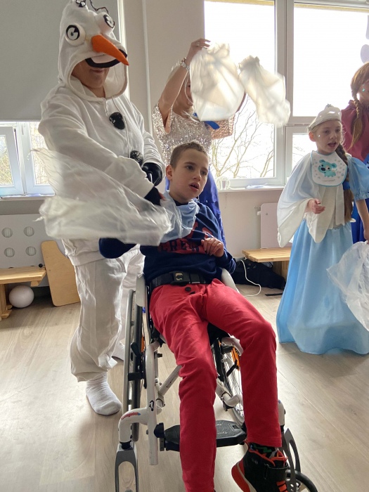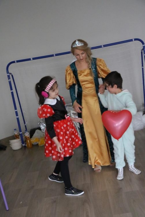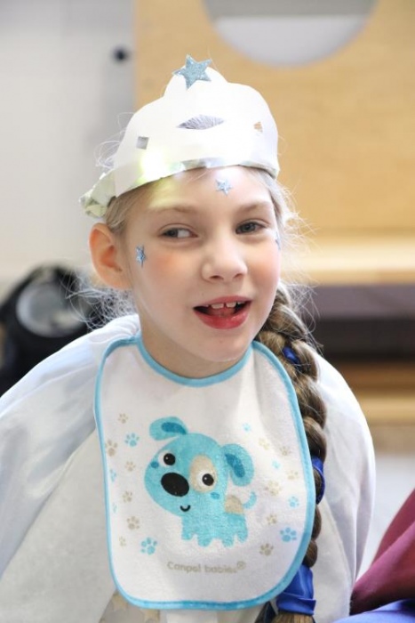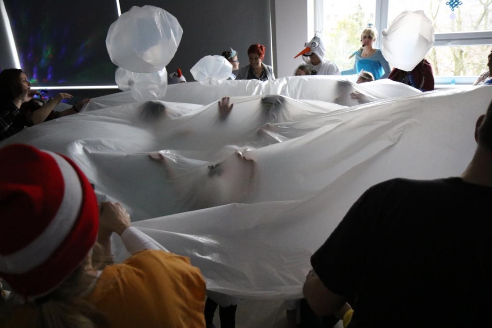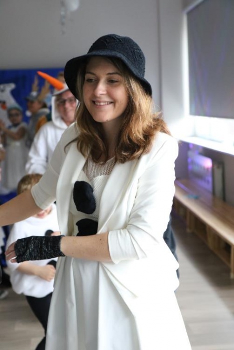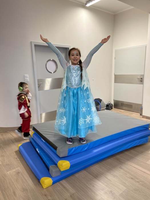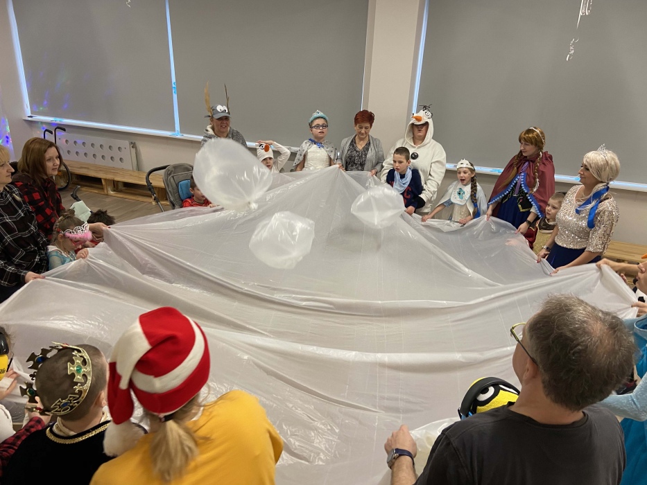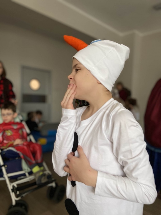 Na bal dzieci, a także pracownicy szkoły przybyli w przepięknych, kolorowych i bajecznych strojach. Wśród uczestników nie mogło zabraknąć tematycznych postaci z Elsą, Anną, Svenem i Olafem na czele! Przybyłych gości przywitała Elsa, zapraszając wszystkich do zimowych zabaw. Nie zabrakło "lodowego poczęstunku" oraz pląsów przy muzyce, wśród których dominowały ulubione hity z bajki "Mam tę moc", "Ulepimy dziś bałwana":) Było wesoło, a gorąca atmosfera ogrzała nie tylko mroźny zamek, ale i całą krainę;)