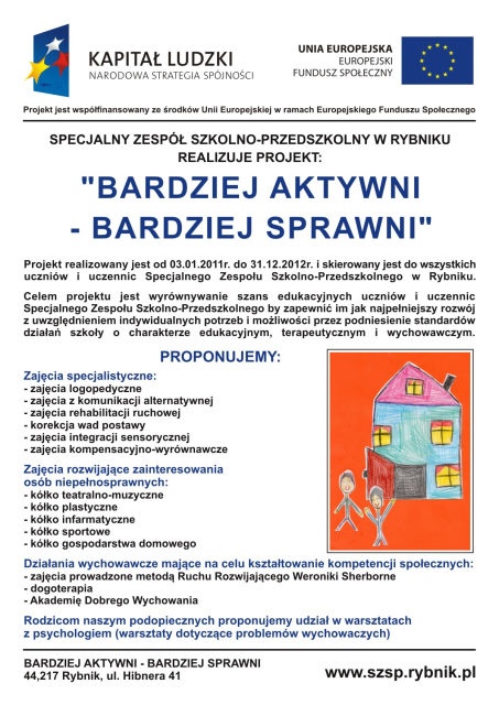 - W minionym miesiącu dzięki udziałowi w projekcie Bardziej Aktywni – Bardziej Sprawni nasza placówka została wyposażona w dodatkowy sprzęt do prowadzenia zajęć rehabilitacji ruchowej i integracji sensorycznej. Dzięki temu sprzętowi większa liczba uczniów będzie mogła zostać objęta zajęciami a trudne ćwiczenia rehabilitacyjne i korekcyjne będą bardziej atrakcyjne a tym samym uczniowie i uczennice będą z większym zaangażowaniem je wykonywać co przyczyni się do ich rozwoju psychoruchowego.