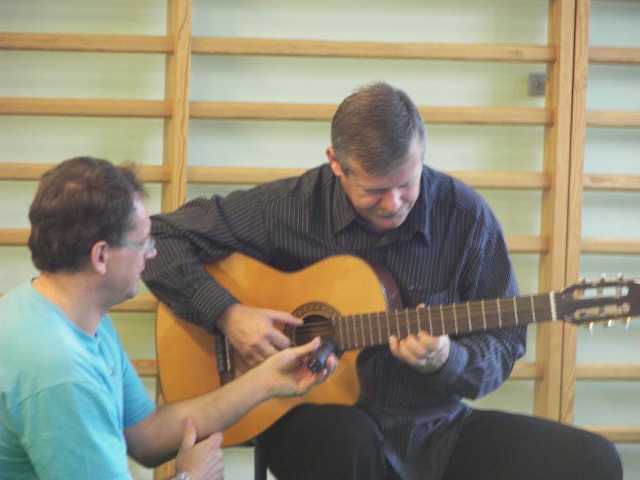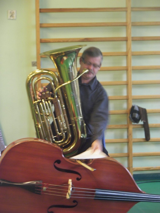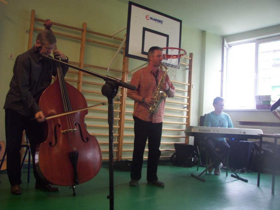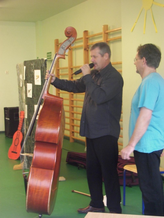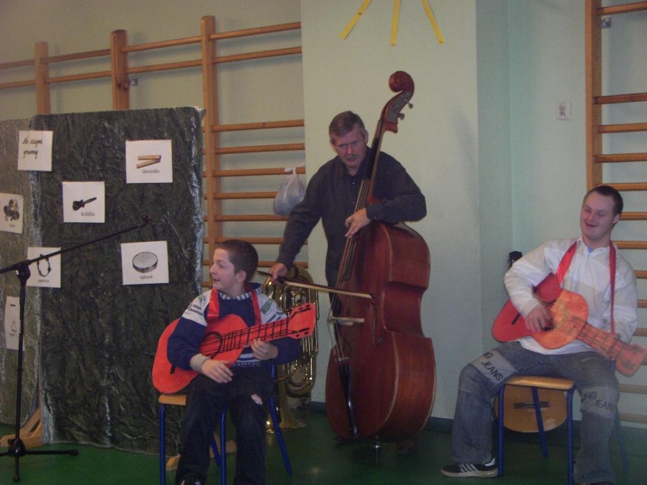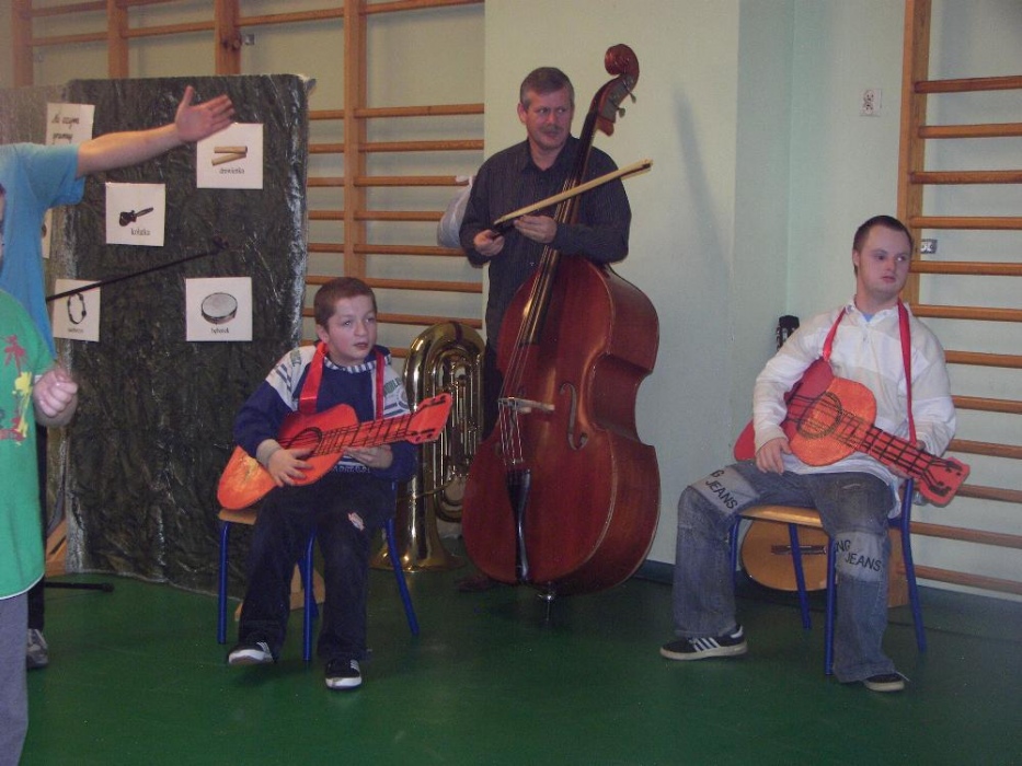 Wśród zaproszonych gości byli: znakomity muzyk znany w Rybniku i nie tylko, pan Andrzej Kocyba, który zaprezentował trzy instrumenty: kontrabas, tubę i gitarę, drugim "gościem" był nasz muzyk pan Dariusz Panek, który pokazał budowę i brzmienie fletu i saksofonu. Oprócz zaproszonych muzyków, pan Tadeusz Janowicz pokazał uczestnikom audycji brzmienie akordeonu. Nad całością spotkania czuwała pani Joanna Sobik, która prowadziła z dziećmi pogadankę oraz prowadziła zabawy muzyczno-ruchowe.