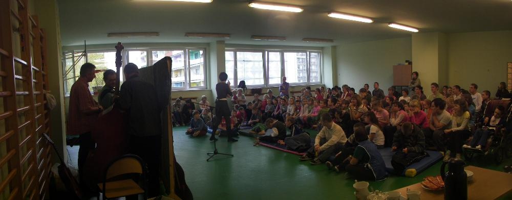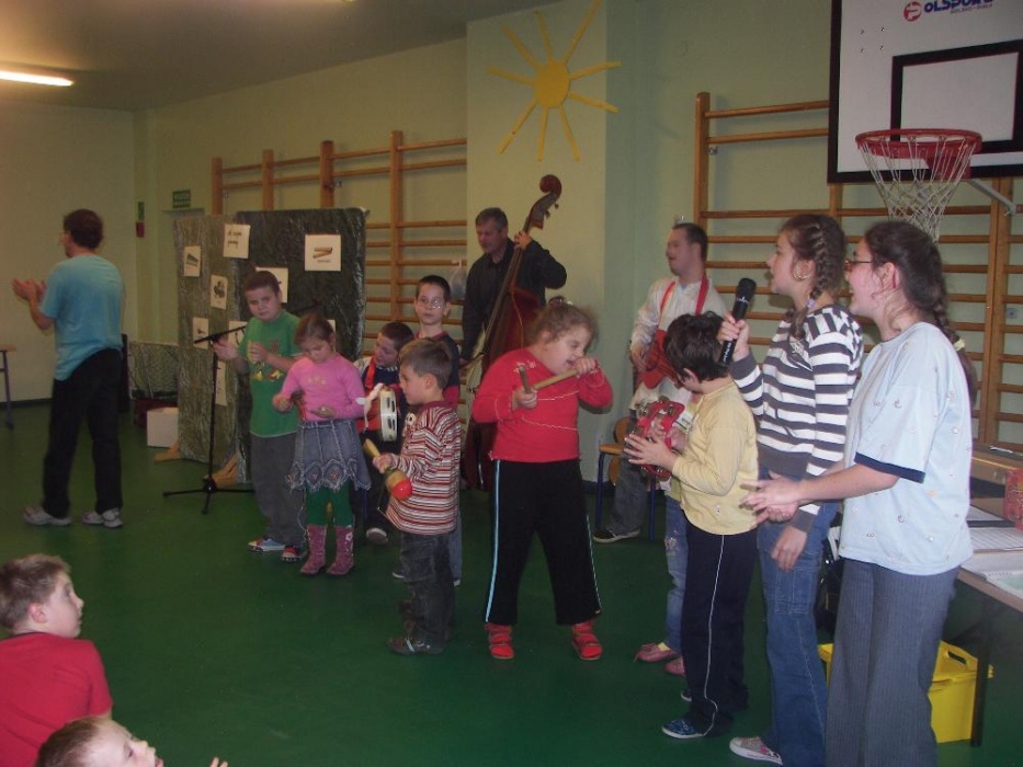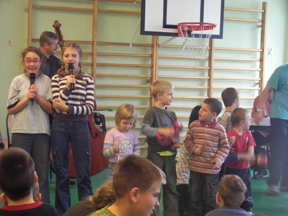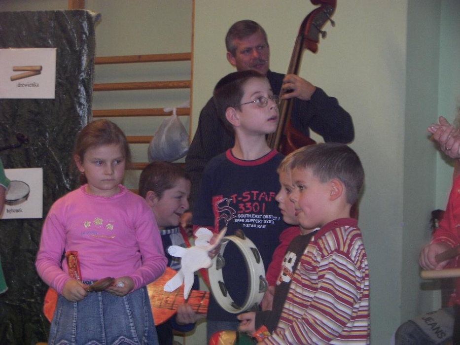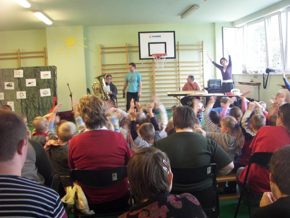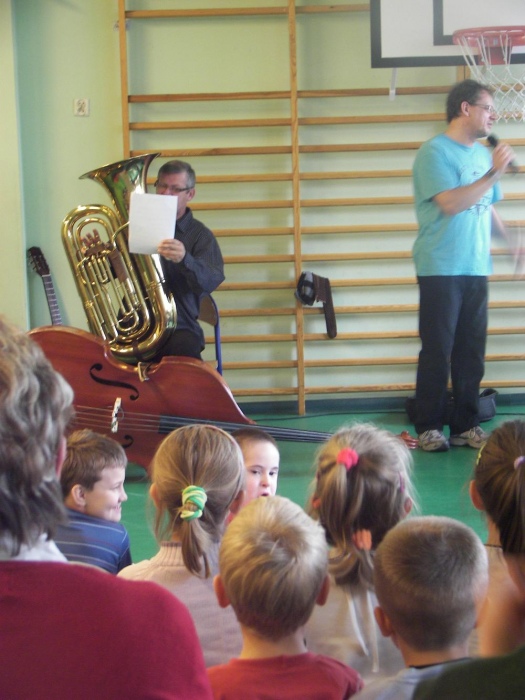 Dzieci zebrane na sali gimnastycznej poznały opis, budowę i brzmienie przedstawionych instrumentów. Mogły również posłuchać znanych melodii zagranych na tychże instrumentach. Był tez czas, aby wraz z profesjonalnymi muzykami zagrać w małej orkiestrze na instrumentach perkusyjnych oraz zaśpiewać z nimi znane i popularne w szkole piosenki. Audycję można uznać za sukces gdyż dzieci nie do końca jeszcze kojarzyły wszystkie instrumenty: np.: kontrabas "mylono" z gitarą albo ze skrzypcami itp. Pod koniec zapowiedziano kolejne spotkania z muzyką.