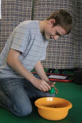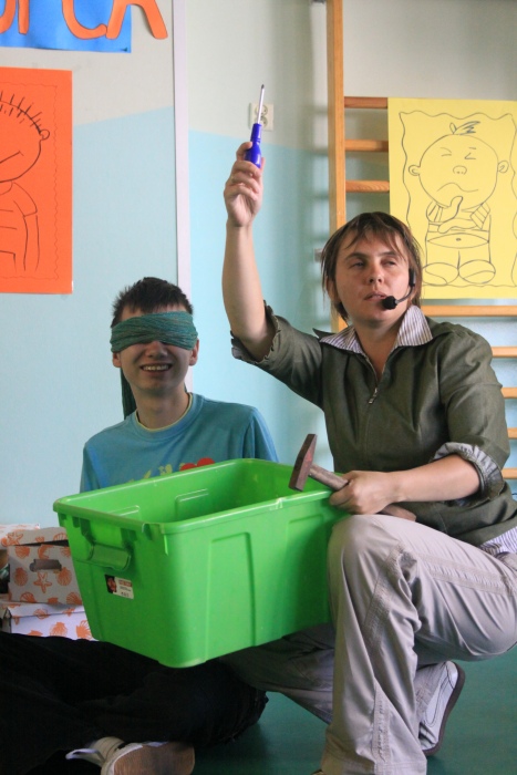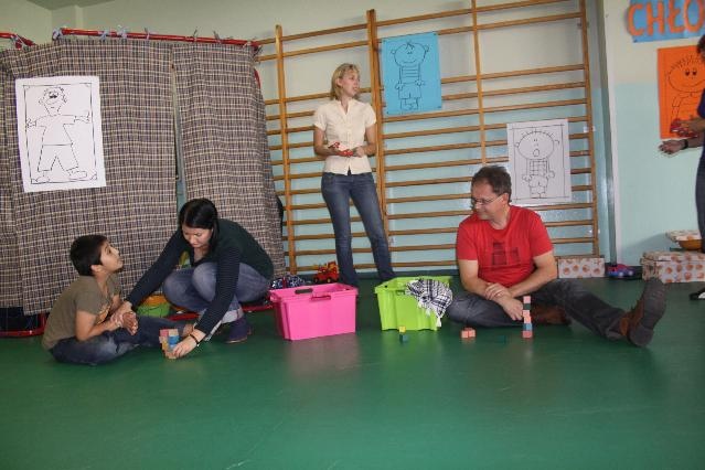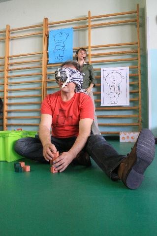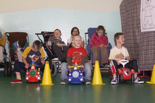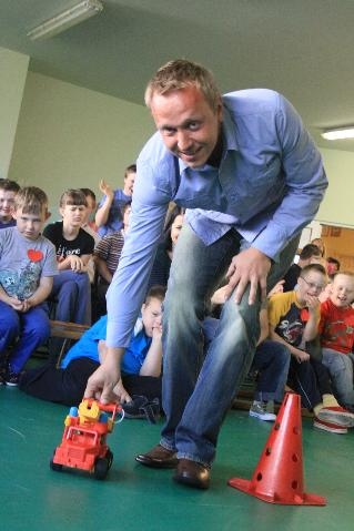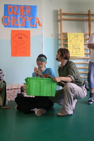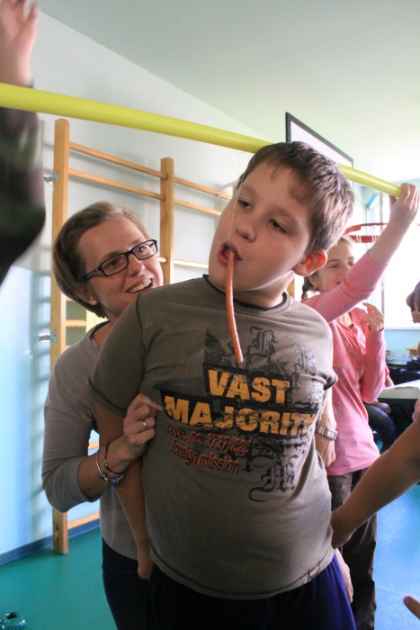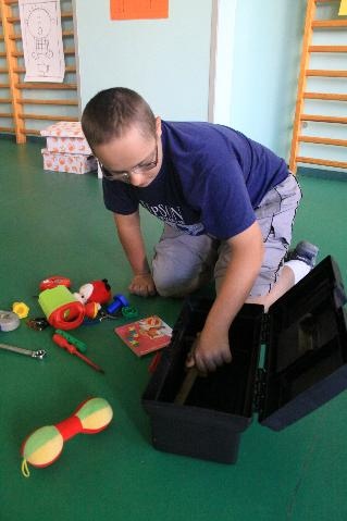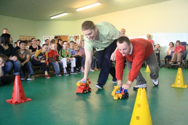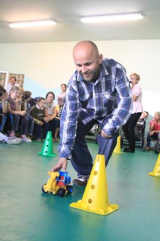 Chłopcy rywalizowali z sobą w różnych konkurencjach. Konkursowym zadaniem było między innymi jazda na jeździkach, wyścigi samochodami, zakręcanie i rozkręcanie śrubek, segregowanie narzędzi oraz rozpoznawanie ich z zamkniętymi oczyma, budowanie wieży z klocków, jedzenie na czas kiełbasek oraz kiślu. Chłopaki i Ci mali i Ci duzi świetnie się spisali!!!
