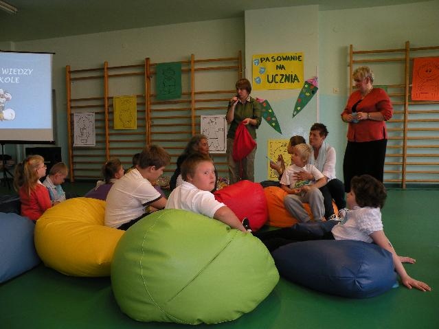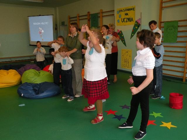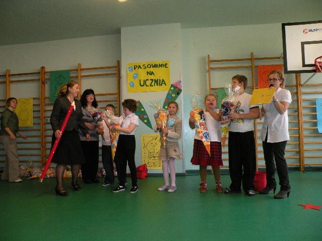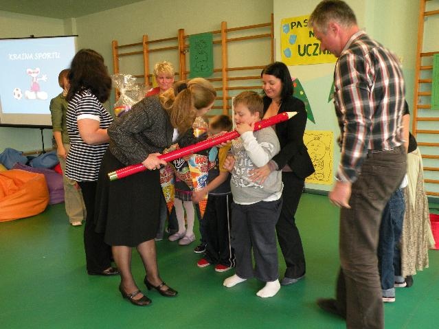 5 października był ważnym dniem w szkole, zwłaszcza dla uczniów pierwszych klas i ich nauczycieli. W tym dniu odbyła się uroczystość Pasowania na ucznia. Pierwszaki wędrując przez trzy krainy: muzyki, wiedzy o szkole oraz sportu udowodniły, że mogą zostać włączone do grona uczniów. Dzieci przejęte były chwilą pasowania, zwłaszcza, że ołówek pani dyrektor wzbudzał respekt. Nowi uczniowie otrzymali tradycyjne tyty, z którymi dumnie pozowali do pamiątkowych zdjęć.
