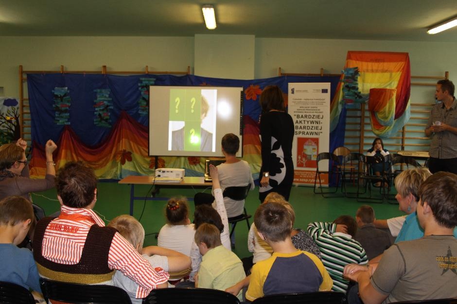 W czwartek 13 października obchodziliśmy Dzień Edukacji Narodowej – święto wszystkich nauczycieli i innych pracowników szkoły oraz święto uczniów. Tradycyjnie świętowaliśmy razem się bawiąc. Na początku rozpoznawaliśmy pracowników szkoły na zdjęciach odkrywanych na ekranie kawałek po kawałku. Okazało się, iż uczniowie lepiej zapamiętali szczegóły niż dorośli i po fragmencie ubrania potrafią rozpoznać nauczyciela.
