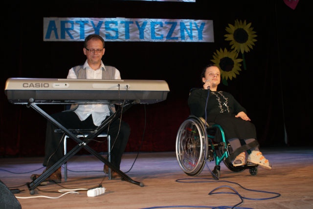 Nasi uczniowie znowu na deskach teatru. Tym razem wzięli udział w Przeglądzie Artystycznym zorganizowanym przez Specjalny Ośrodek Szkolno – Wychowawczy w Rybniku. W Przeglądzie wziął udział Zespół Baj w kategorii Zespołów Wokalno – Artystycznych oraz dwóch wokalistów Ania Wiśniewska i Bartek Gierłowski. Uczniowie mogli szlifować swój warsztat w ramach zajęć Kółka Teatralno – Muzycznego realizowanego w ramach projektu Bardziej Aktywni – Bardziej Sprawni.
