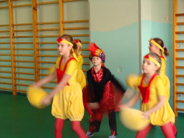 Po przedstawieniu uczniowie zobaczyli jeszcze krótki występ pt.: „Szalone kurczaki” w wykonaniu zespołu tanecznego „Mini Flex” z Młodzieżowego Domu Kultury z Rybnika.
