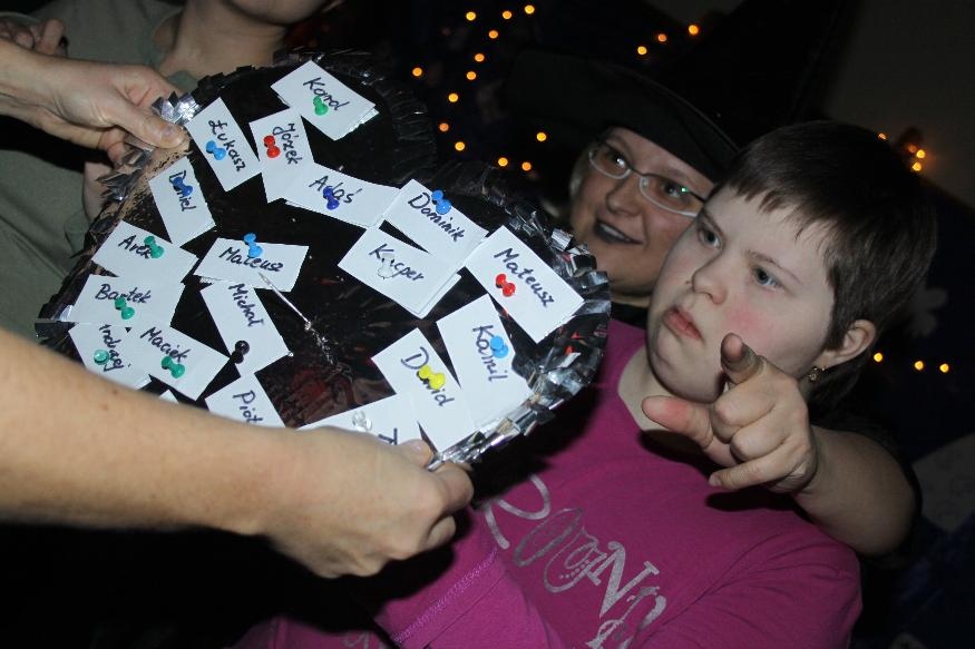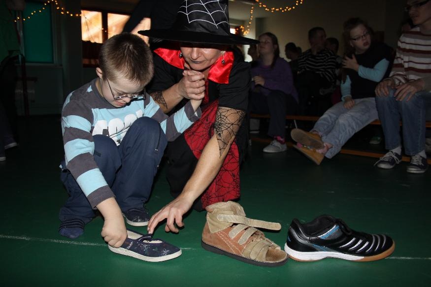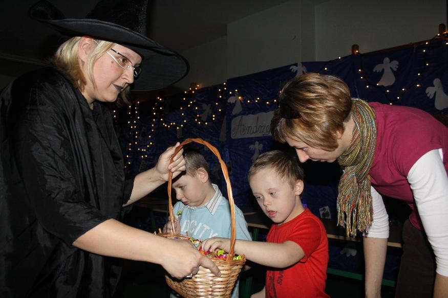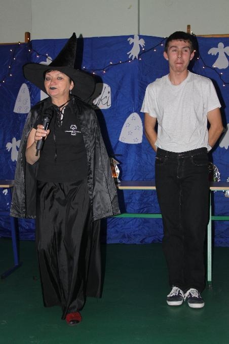 W naszej szkole 30 listopada odbyła się impreza andrzejkowa. Na początku zabawy czarownica Ula powitała zgromadzone dzieci na sali gimnastycznej. Wśród naszych uczniów jest Andrzej Motyka, któremu odśpiewaliśmy 100 lat. Następnie czarownica Ula, Ada i Beata zaprosiły dzieci do wspólnej zabawy. W sali logopedycznej czarodziejka Ewa wróżyła dzieciom przy pomocy lania wosku przez klucz. Czarownica Ula poprzez przebijanie serc wywróżyła dziewczynkom i chłopcom imiona przyszłych narzyczonych. Była równiż zabawa z butami. Wróżyła dzieciom, które pierwsze wyjdzie za mąż. Dla oddziału rewalidacyjno-wychowawczego przygotowano zabawę-przyklejanie czarownicom brakujących elementów. Na sali pojawił się wiatr, który rozsypał karty, gwiazdki i duszki. Zrobił bałagan, a dzieci musiały zrobić porządek, poprzez segregowanie i wrzucanie elementów do koszyczków. Zaproszono również dzieci do konkurencji z miotłami i piłkami-toczenie piłki przy pomocy miotły do bramki oraz wyścigi na miotłach. Główną atrakcją było jedzenie ciasteczek. Niektóre z nich były z niespodzianką (pierścionek). Dzieci poczęstowano smakołykami i zakończono zabawę przy doskonałej muzyce.