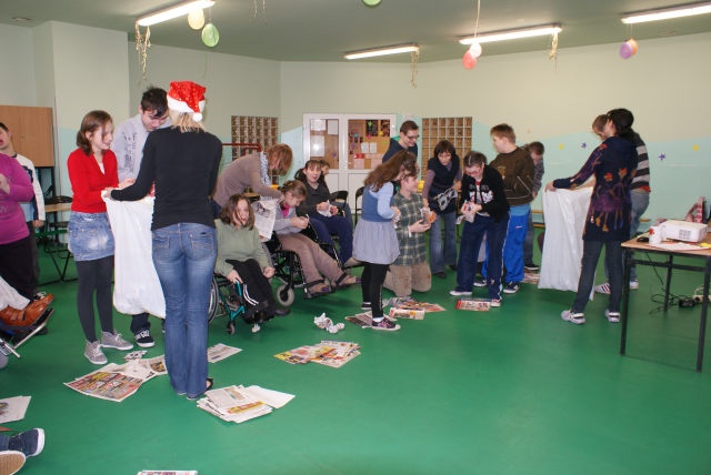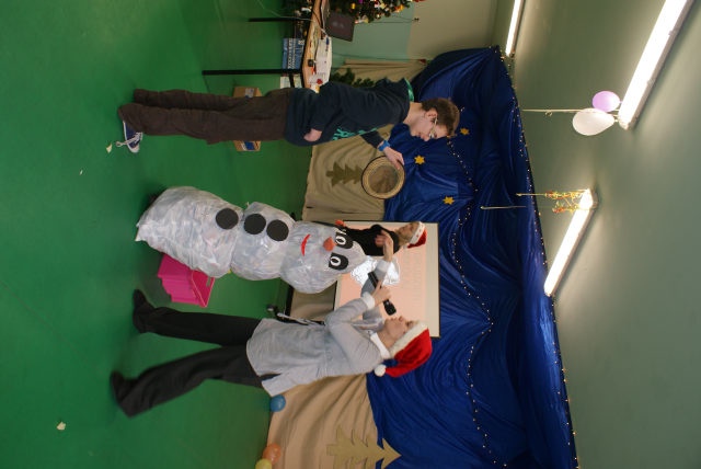 W dniu 27.01 w naszej szkole odbył się konkurs "Cztery Pory Roku - Zima" przygotowany specjalnie dla uczniów gimnazjum. W trakcie konkursu przypomnieliśmy sobie wszystkie grudniowe święta: mikołajki, Święta Bożego Narodzenia, sylwester i Nowy Rok, a także związane z nimi charakterystyczne symbole. Był kalendarz adwentowy, mnóstwo "świątecznych" konkurencji wspólnie ulepiony z papieru bałwan. Nie zabrakło szampańskiej zabawy, balonów i noworocznych wystrzałów.Na końcu wspólnej zabawy na wszystkich uczestników czekały aż dwie niespodzianki: drobne upominki i zabawny film, w którym wystąpiły panie nauczycielki przygotowujące konkurs. Do Siego Roku!
