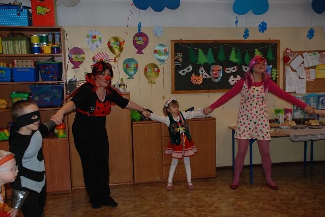 Było wspólne czarowanie „czary mary” w wyniku czego wśród uczestników balu wyczarowani zostali: klauni, królewna, kowboje, Zuzia, biedronka, baca, krakowianka, indianin, muszkieter, oraz superman. Dzieci łączyły przyjemność tańca z pokazem strojów karnawałowych przy hitach dla najmłodszych. był zabawy takie jak: „Balonik”, „Karuzela”, „Labada”, zabawa z chustą Klanzy i wiele innych atrakcji.