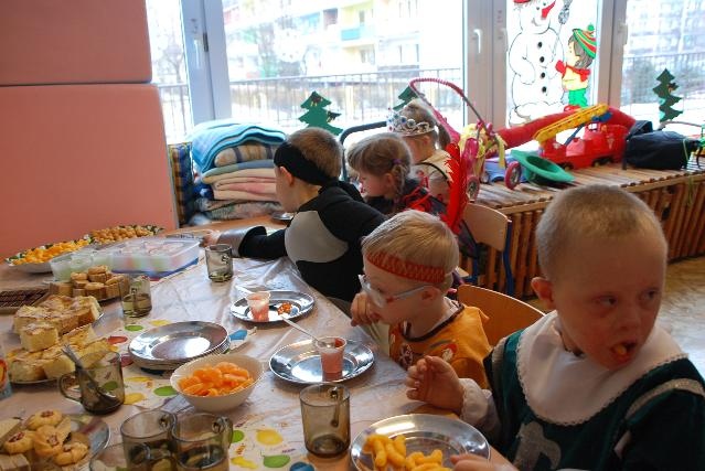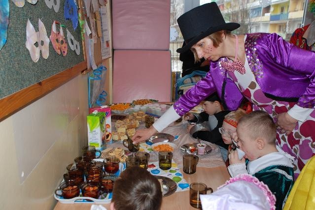 Maluchy miały też poczęstunek: zaczarowaną galaretkę, ciasteczka i inne łakocie. Zabawa mogła się podobać wszystkim uczestnikom o czym świadczą uśmiechnięte buzie dzieci.
