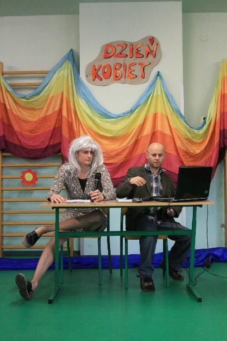 Dzień Kobiet jest obecnie świętem nieco zapomnianym, obchodzonym nie tak hucznie jak przed laty. Ale w naszej szkole wciąż ma szczególną oprawę - od wielu lat męska część grona pedagogicznego, w tajemnicy przed damską, przygotowuje wyjątkowy "prezent artystyczny". Niezmiennie zaskakujący, zabawny i wzruszający.