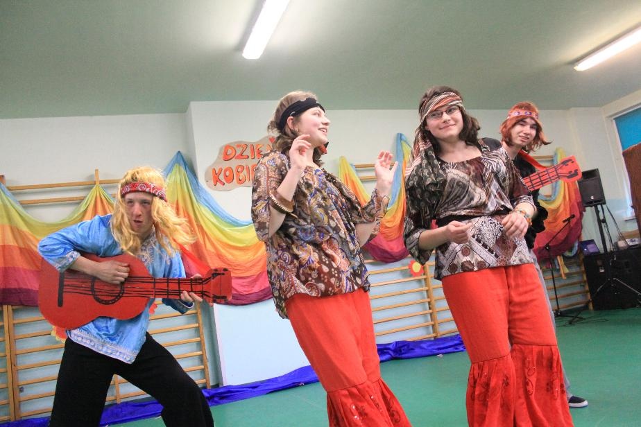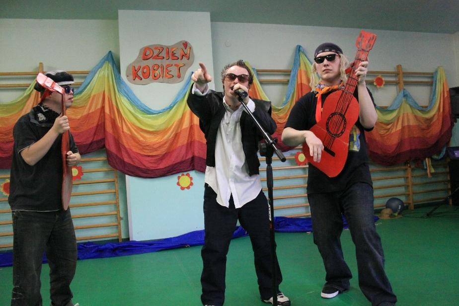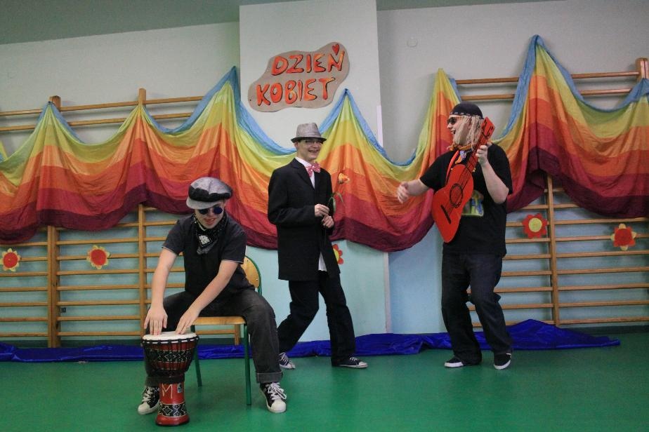 Uwieńczeniem obchodów szkolnego Dnia Kobiet było chóralne wykonanie przez naszych panów - Adama Reka, Tomasza Ganobisa, Wojciecha Wieczorka i Tadeusza Janowicza piosenki - protest songu "Kobiety są jak kwiaty" .