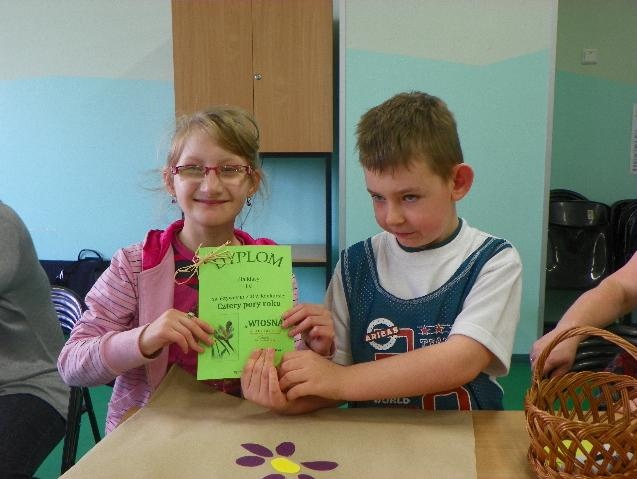 Wszystkie klasy otrzymały pamiątkowe dyplomy oraz nagrody: zestawy artykułów papierniczych, które na pewno przydadzą się do wykonania prac plastycznych o wiośnie.