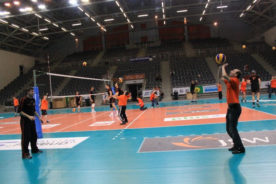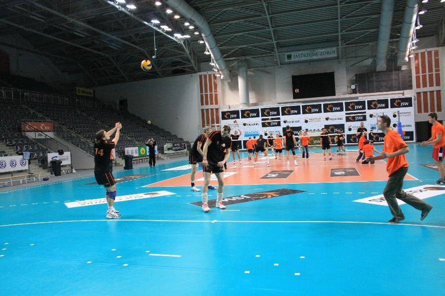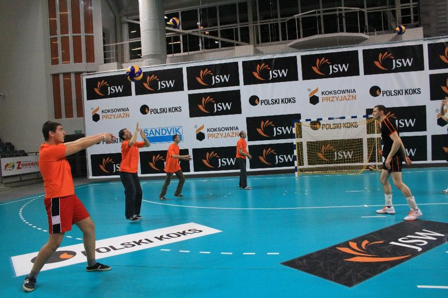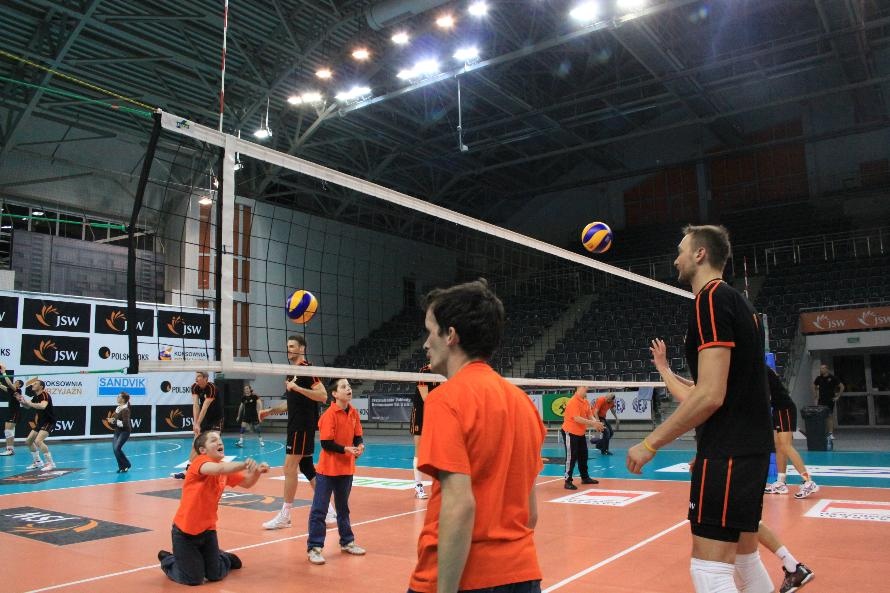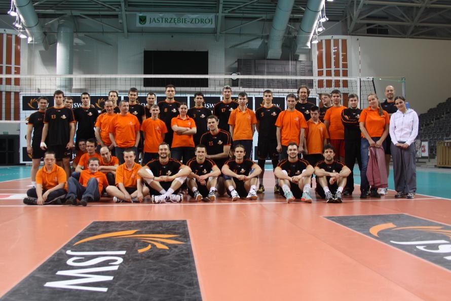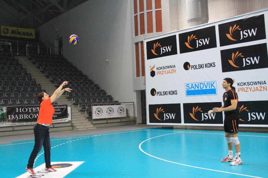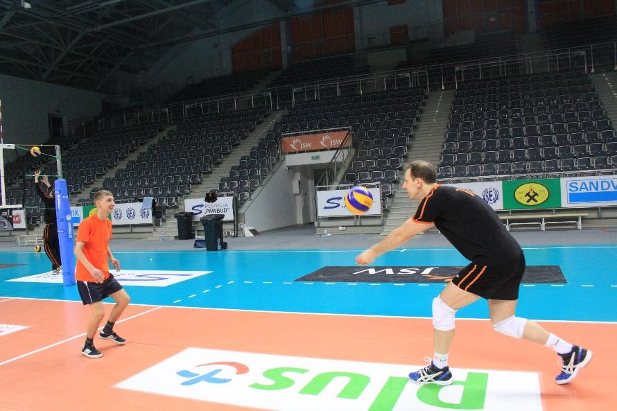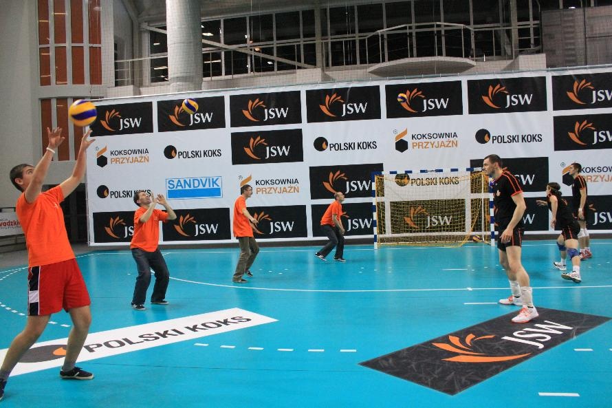 Działacze i trenerzy JW zaprosili nas na wspólny trening, oferując wspaniałą zabawę i niezapomniane przeżycia. Piętnastu rybnickich sportowców najpierw przez ponad dwie godziny obserwowało treningowe zmagania zawodników, którzy, jak zauważył Grzegorz Trunk podczas meczu "liczyli punkty jakoś dziwnie" (na treningach siatkarze stosują dla własnych potrzeb inne zasady naliczania punktów). Później sami wkroczyli na boisko i pod okiem siatkarzy Jastrzębskiego Węgla wykonywali proste, nie tylko siatkarskie ćwiczenia z piłką.
