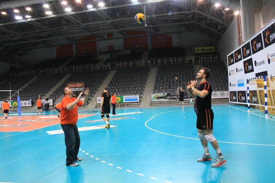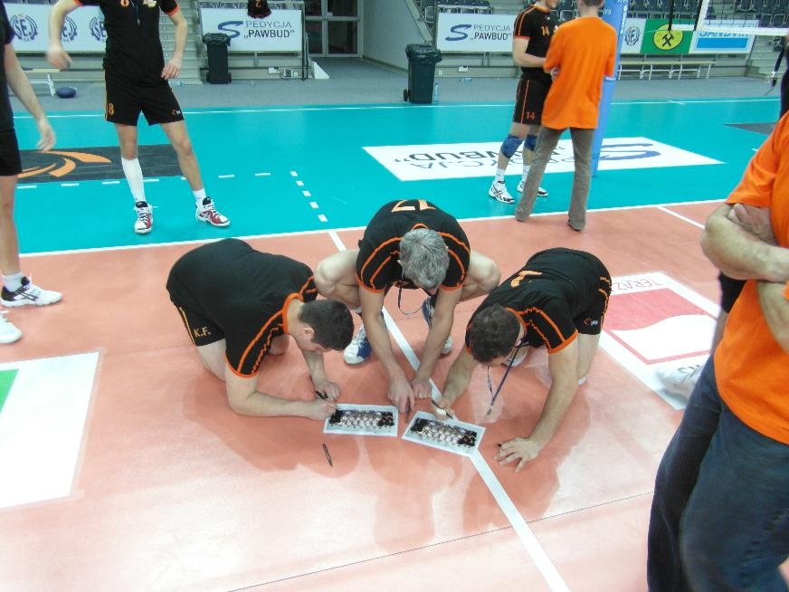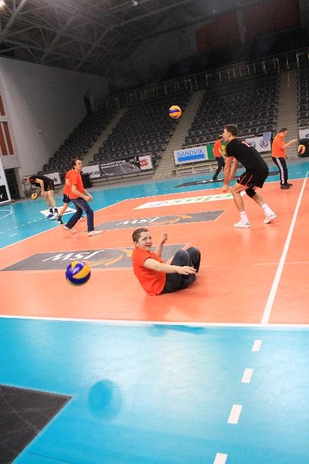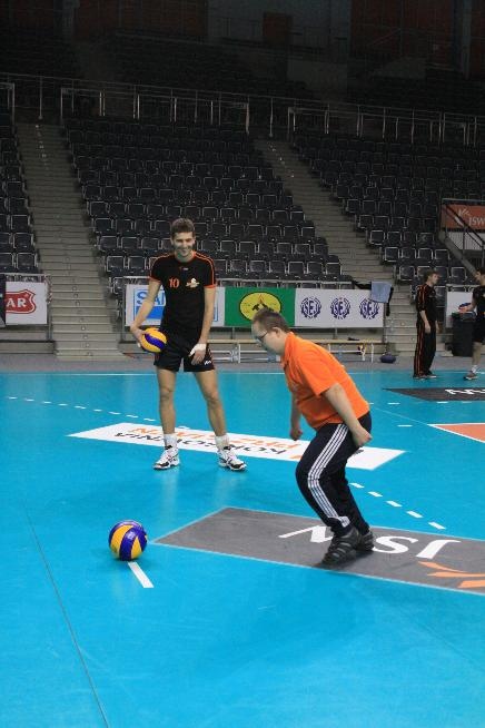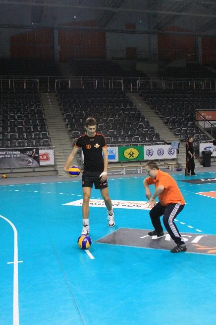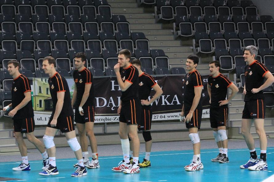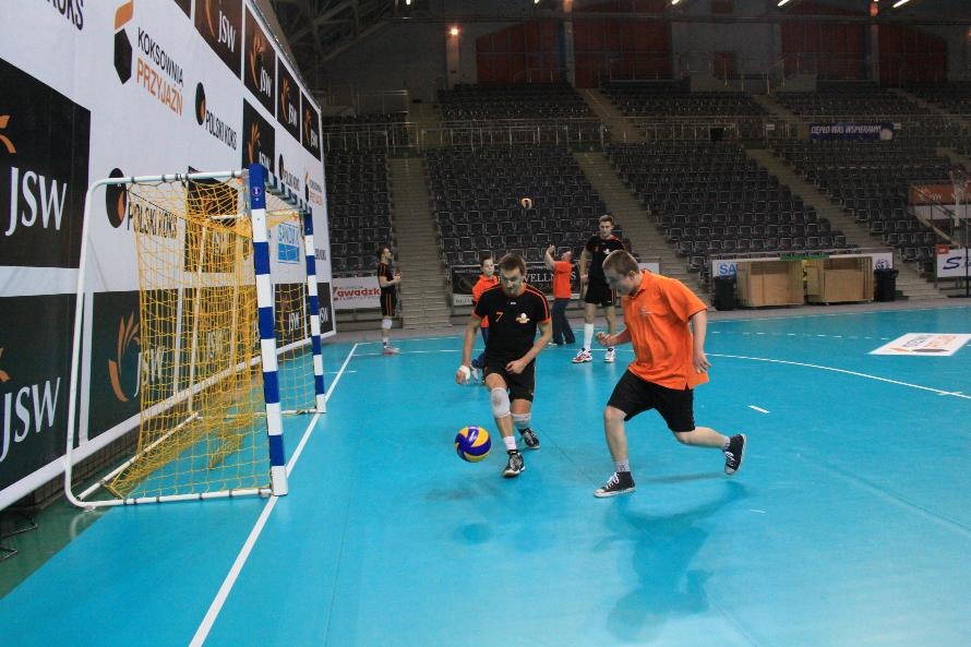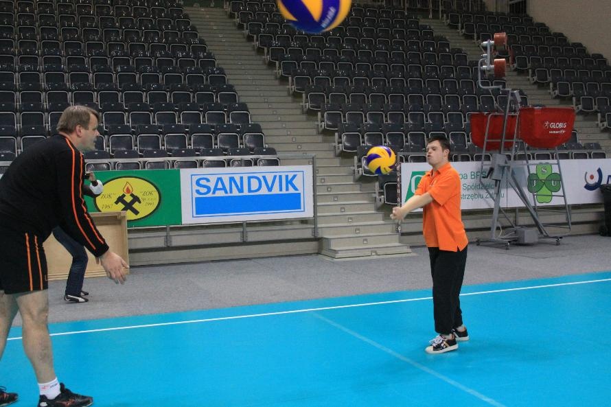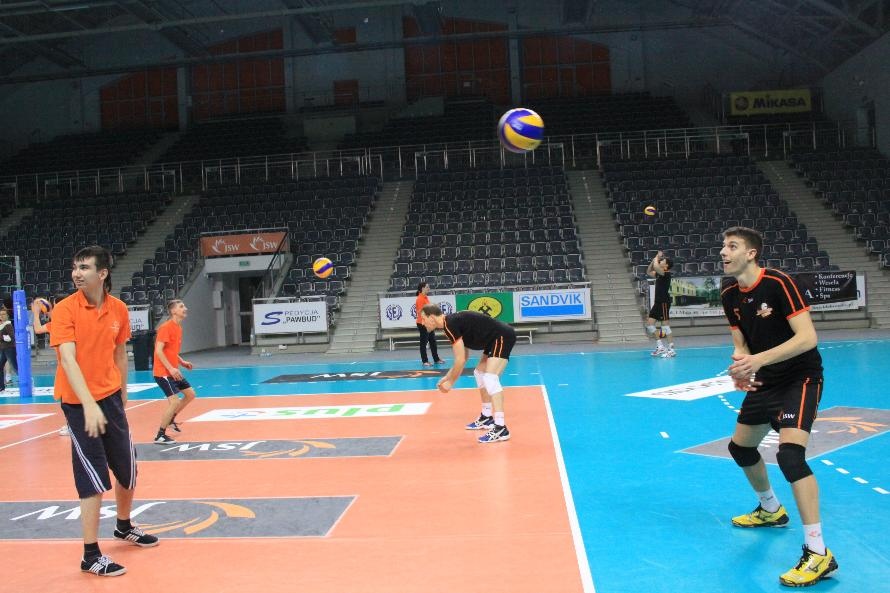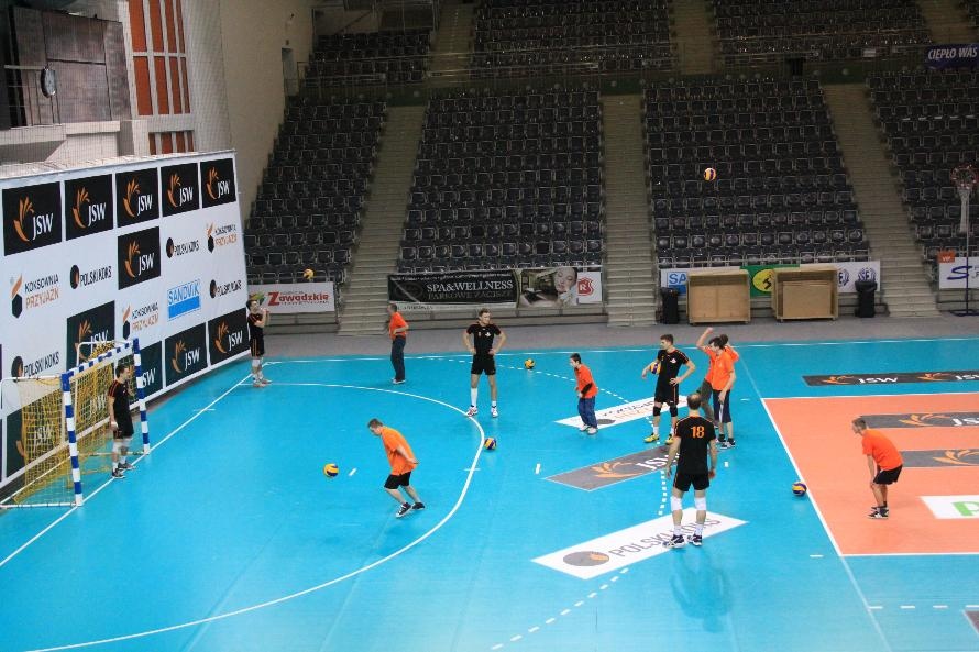 Działacze i trenerzy JW zaprosili nas na wspólny trening, oferując wspaniałą zabawę i niezapomniane przeżycia. Piętnastu rybnickich sportowców najpierw przez ponad dwie godziny obserwowało treningowe zmagania zawodników, którzy, jak zauważył Grzegorz Trunk podczas meczu "liczyli punkty jakoś dziwnie" (na treningach siatkarze stosują dla własnych potrzeb inne zasady naliczania punktów). Później sami wkroczyli na boisko i pod okiem siatkarzy Jastrzębskiego Węgla wykonywali proste, nie tylko siatkarskie ćwiczenia z piłką.