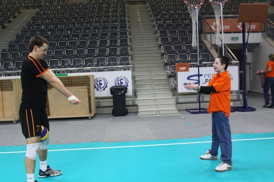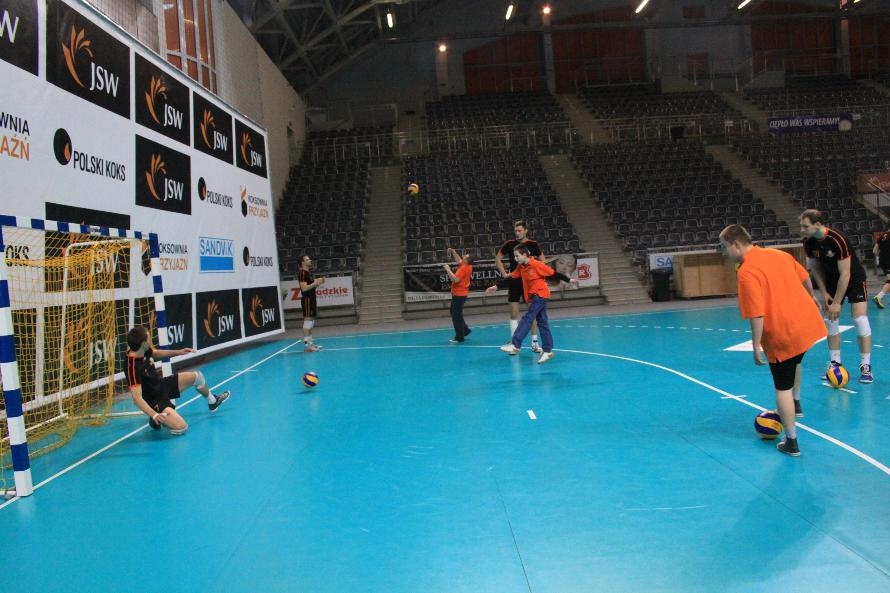 Wielkim zaangażowaniem i poświeceniem wykazał się Grzesiu Trunk, który odbijał piłkę z największą gwiazdą Jastrzębia - Michałem Łasko. Tak bardzo biegał za nią (na kolanach), że poprzecierał strupki, które zaczęły krwawić. Mimo to nie poddał się i wytrwale wykonywał polecenia swojego mistrza. Z kolei Kacper Nidecki trenował z rybniczaninem Pawłem Ruskiem, który kończy właśnie AWF i nie wyklucza, że w przyszłości, po zakończeniu kariery sportowej, podejmie pracę z dziećmi.