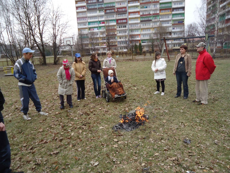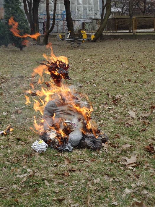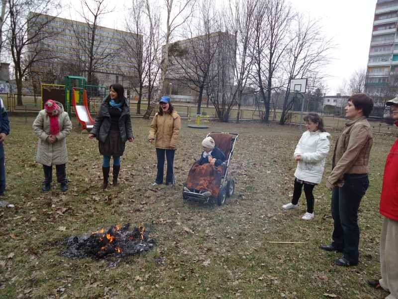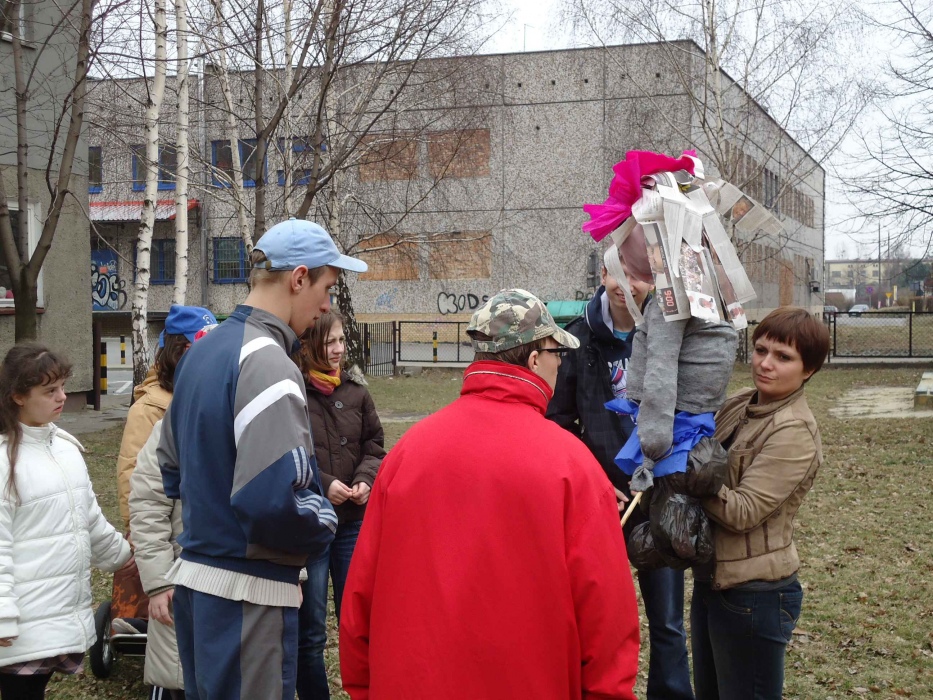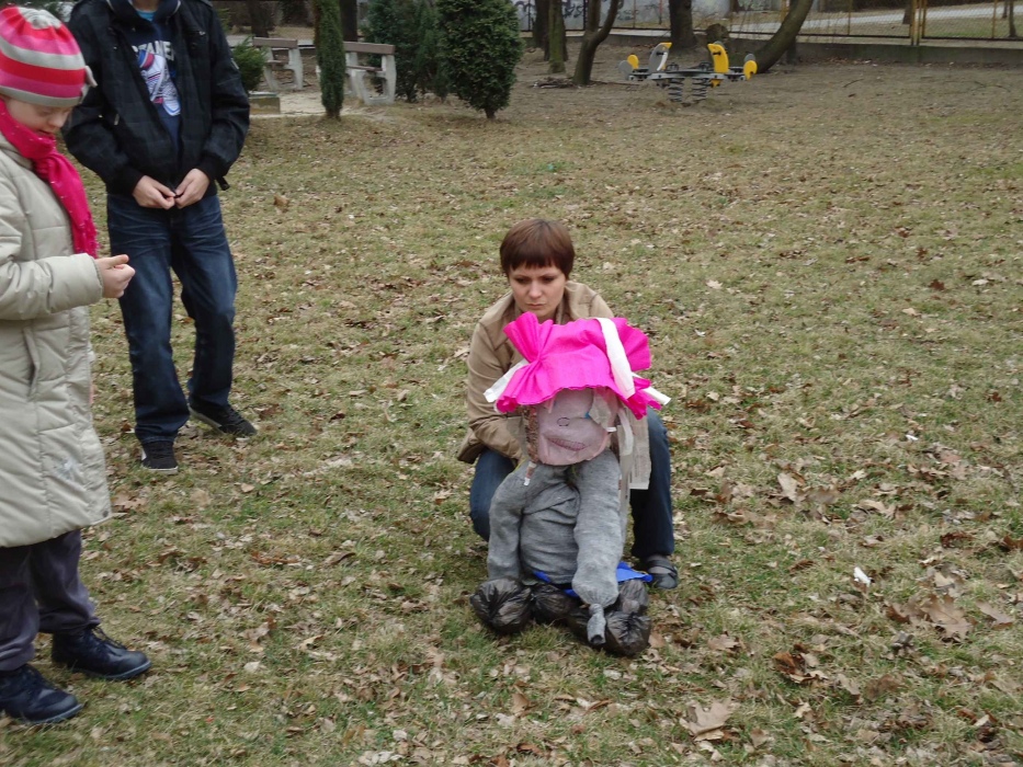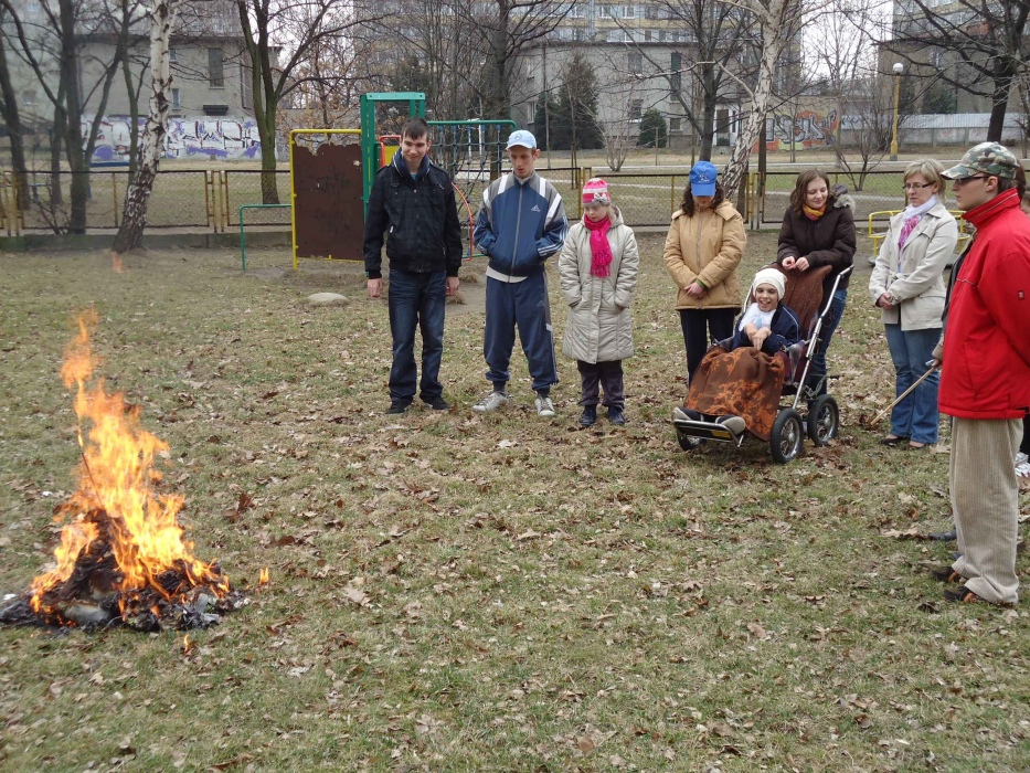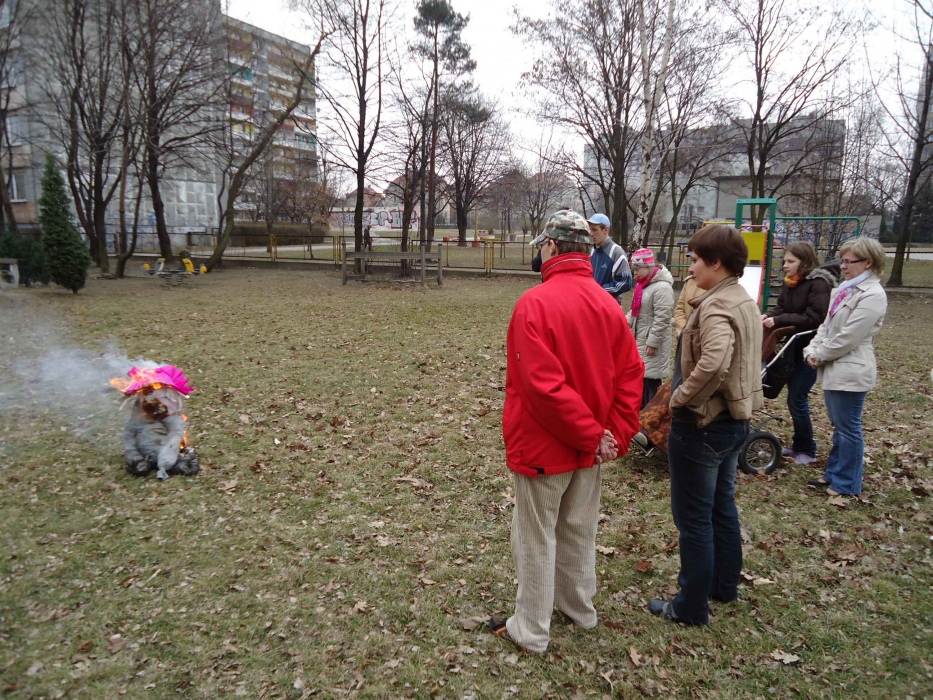 Choć na podwórku jeszcze jest chłodno w kalendarzu rozpoczęła się już oczekiwana z niecierpliwością wiosna. Aby przegonić zimę postanowiliśmy pożegnać ją paląc kukłę tradycyjnej Marzanny w szkolnym ogrodzie. Dzieci pożegnały zimę a przywitały wiosnę śpiewając piosenki i bawiąc się w kole. Potem wyruszyliśmy na spacer po okolicy w poszukiwaniu pierwszych oznak wiosny.