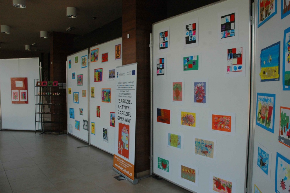 W Domu Kultury w Rybniku Niedobczycach wystawione są prace naszych uczniów- uczestników i uczestniczek zajęć kółka plastycznego odbywającego się w ramach projektu współfinansowanego ze środków Unii Europejskiej "Bardziej aktywni- Bardziej sprawni". Prace zostały wykonane różnorodnymi technikami plastycznymi. W zajęciach uczestniczą uczniowie i uczennice szkoły podstawowej i gimnazjum. Pod kierunkiem pani Doroty Bajak zapoznają się oni z różnorodnymi materiałami i technikami plastycznymi min. lepieniem w glinie, decoupagem, malowaniem pastelami, collagem, czy malowaniem pastą. Zajęcia plastyczne są doskonałą formą rozwijania kreatywności osób niepełnosprawnych, odkrywania przez nie przyjemności tworzenia i pobudzania u nich aktywności twórczej. Efekty ich pracy można podziwiać na wystawie do 20. maja, od poniedziałku do piątku, w godzinach od 8.00-20.00.