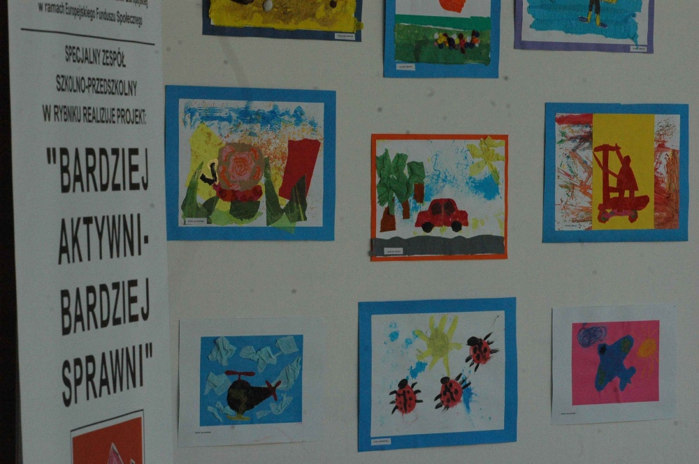W Domu Kultury w Rybniku Niedobczycach wystawione są prace naszych uczniów- uczestników i uczestniczek zajęć kółka plastycznego odbywającego się w ramach projektu współfinansowanego ze środków Unii Europejskiej "Bardziej aktywni- Bardziej sprawni". Prace zostały wykonane różnorodnymi technikami plastycznymi. W zajęciach uczestniczą uczniowie i uczennice szkoły podstawowej i gimnazjum. Pod kierunkiem pani Doroty Bajak zapoznają się oni z różnorodnymi materiałami i technikami plastycznymi min. lepieniem w glinie, decoupagem, malowaniem pastelami, collagem, czy malowaniem pastą. Zajęcia plastyczne są doskonałą formą rozwijania kreatywności osób niepełnosprawnych, odkrywania przez nie przyjemności tworzenia i pobudzania u nich aktywności twórczej. Efekty ich pracy można podziwiać na wystawie do 20. maja, od poniedziałku do piątku, w godzinach od 8.00-20.00.