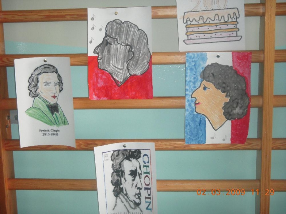 Nasi wychowankowie wykazali się sporą wiedzą nt. Fryderyka Chopina. Wszystkie zadania wykonywali z dużym zaangażowaniem i radością. Warto podkreślić, iż dekoracje były wykonane przez samych uczniów. Stanowiły je przepiękne portrety kompozytora.