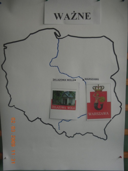 - zaznaczenie na mapie Żelazowej Woli – miejca urodzin Chopina,