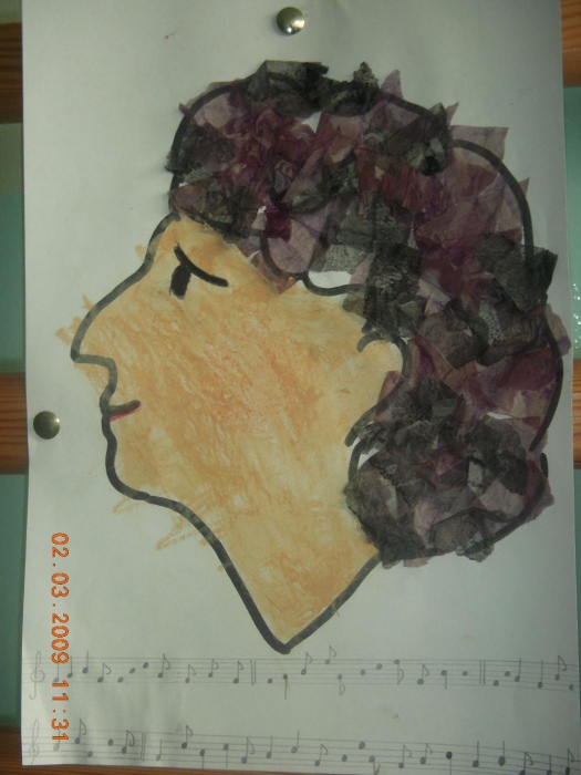 - ułożenie puzzli, przedstawiających portrety kompozytora,
