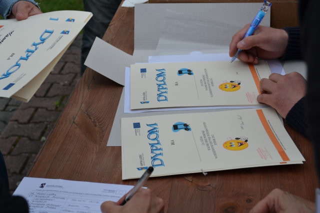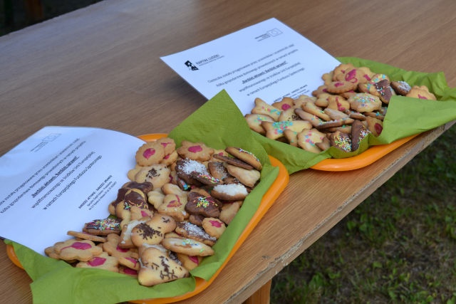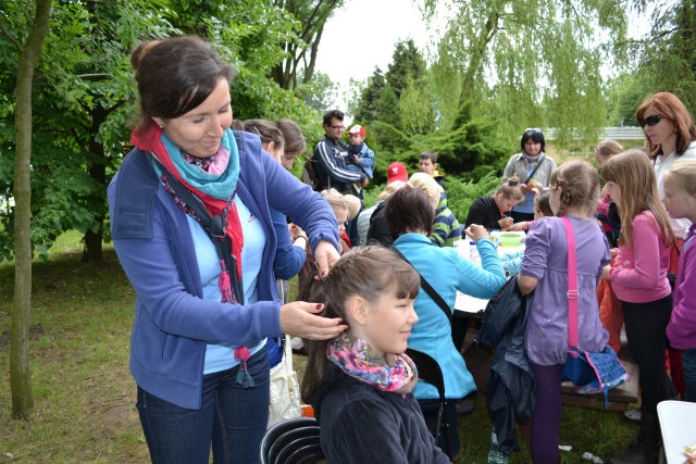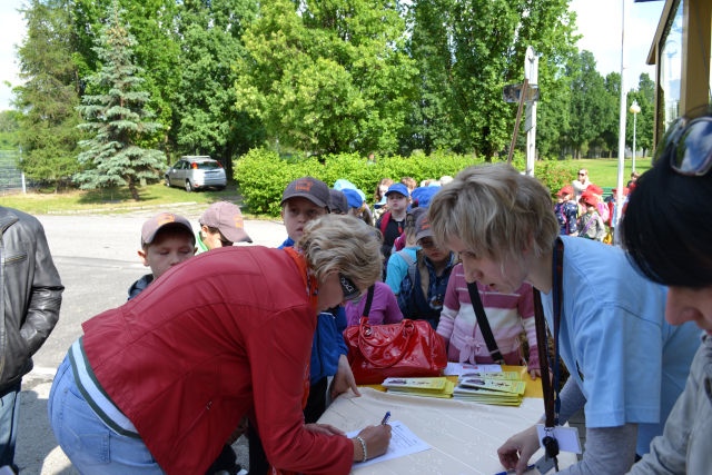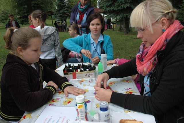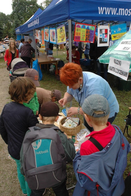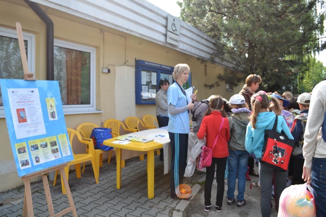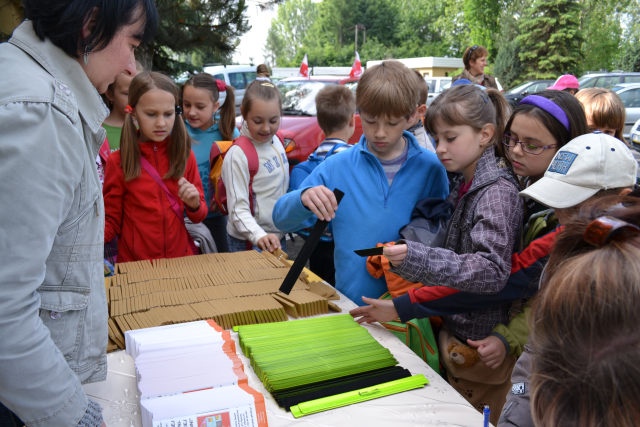Uczestnikom i uczestniczkom festynu rozdano materiały promocyjne – kredki, opaski odblaskowe i zakładki do książek.