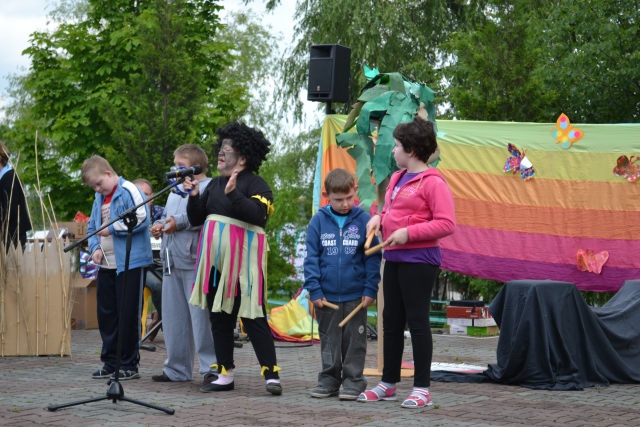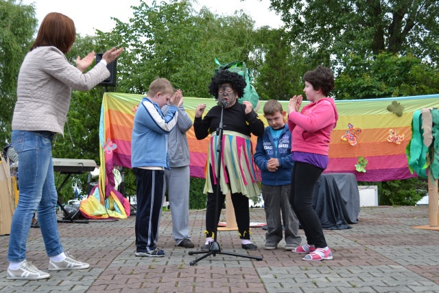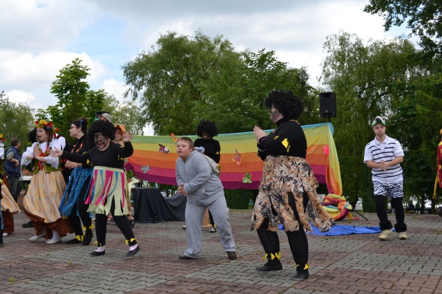 Głównym punktem programu Rodzinnego Festynu Integracyjnego był występ uczestniczek uczestników kółka teatralno-muzycznego, którzy zaprezentowali spektakl pt. „Przyjaciele z Afryki”, który został przyjęty dużym zainteresowaniem. Dzieci nagrodzone zostały gromkimi brawami. Swoje prace zaprezentowali również uczestnicy i uczestniczki kółka plastycznego a smacznymi wypiekami pochwaliły się dzieci biorące udział w zajęciach z gospodarstwa domowego.