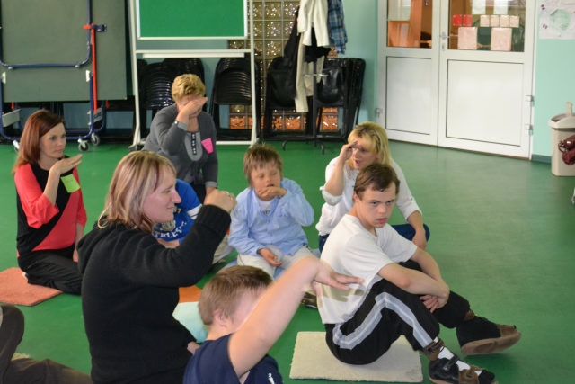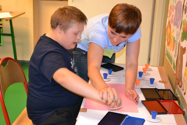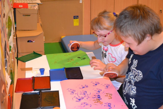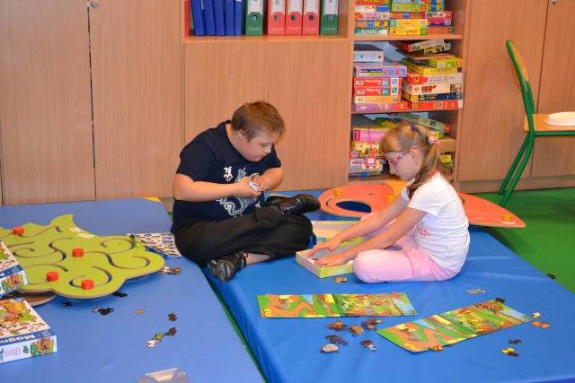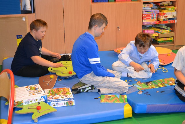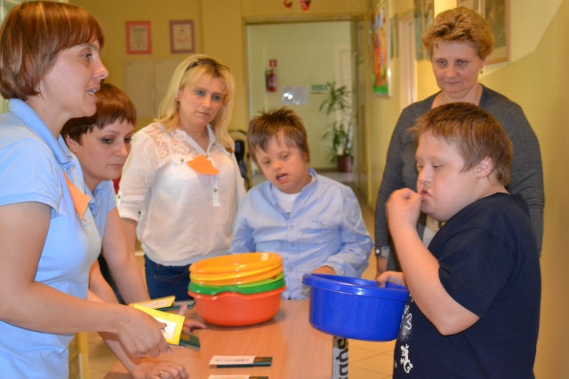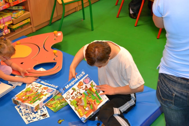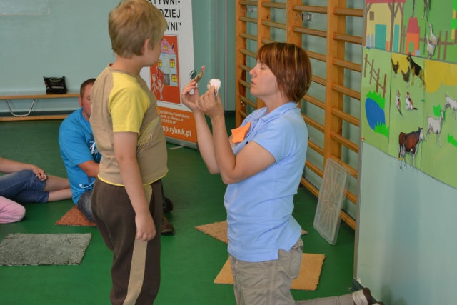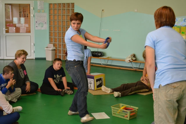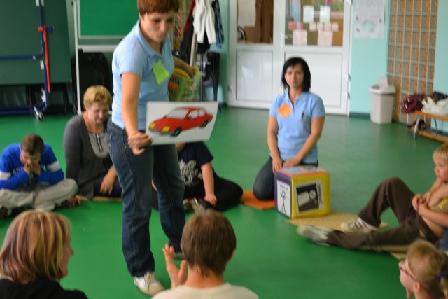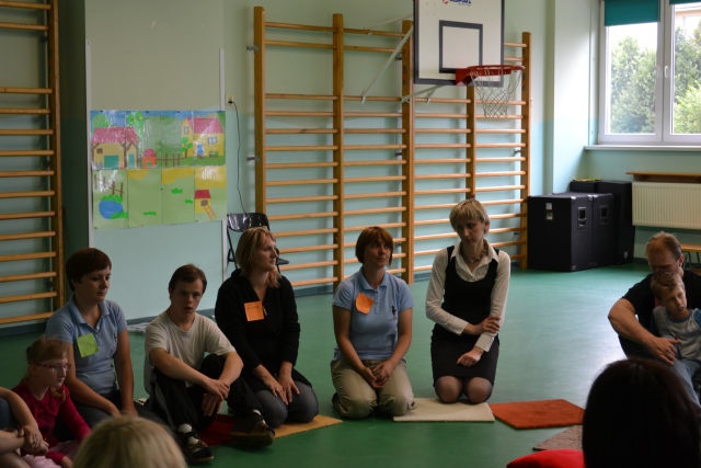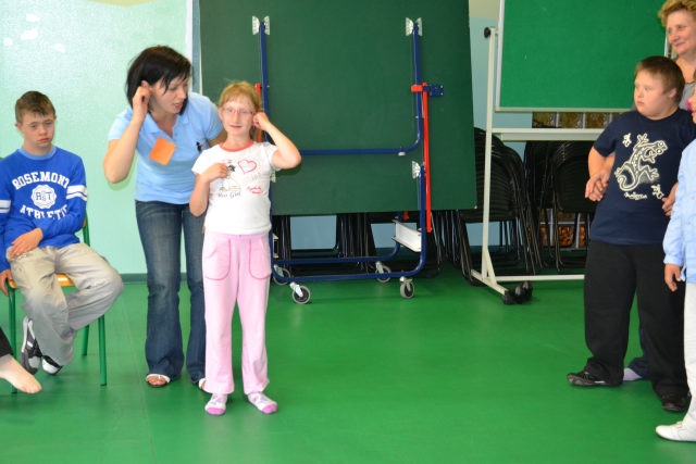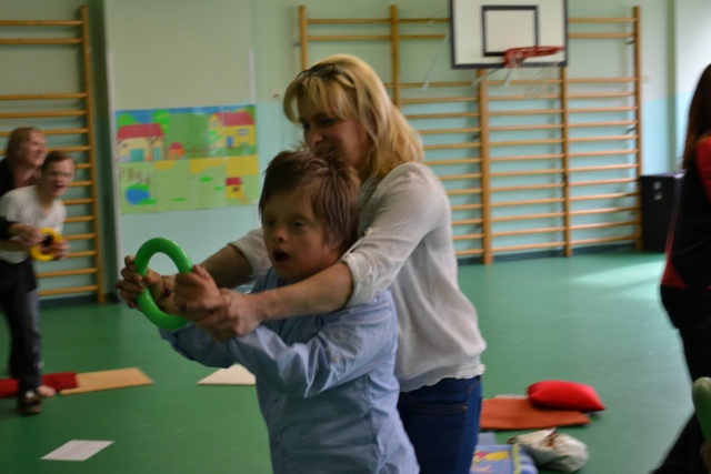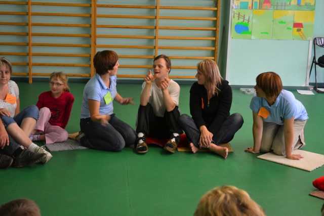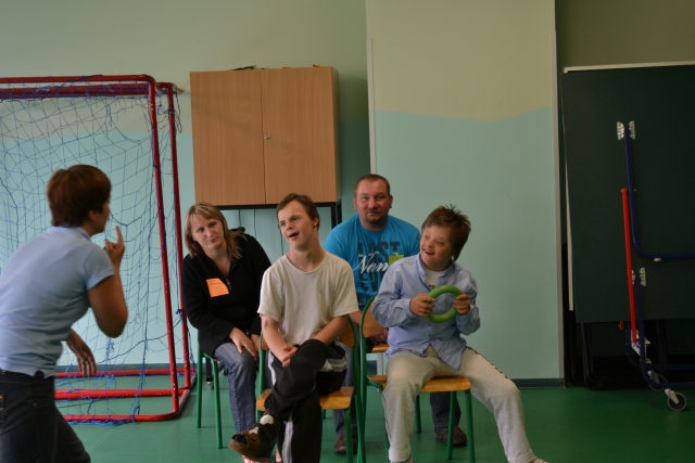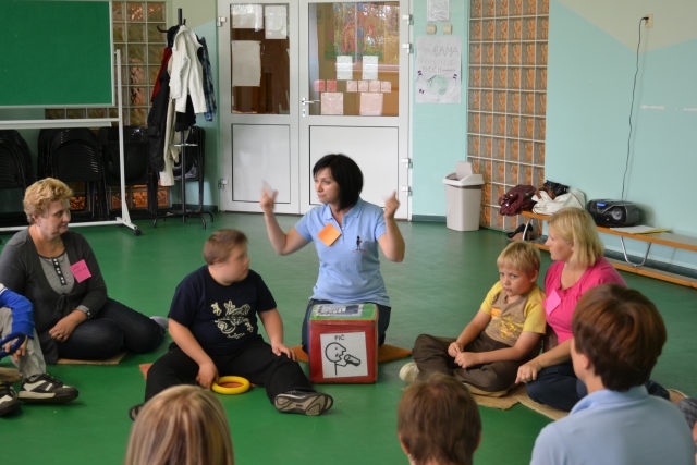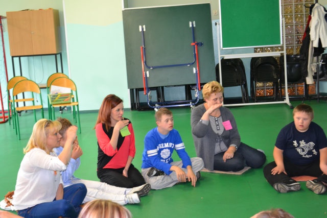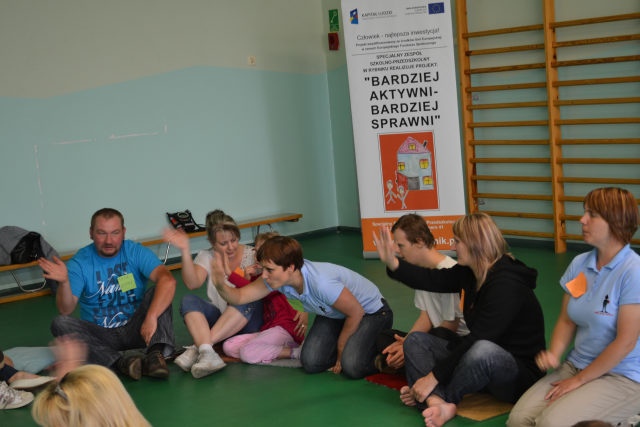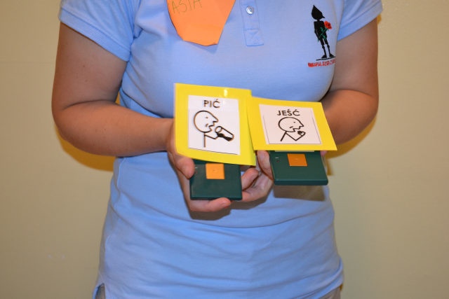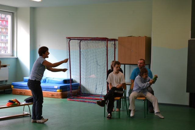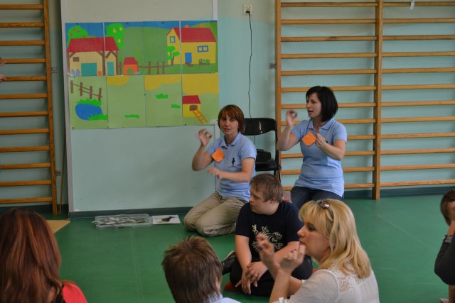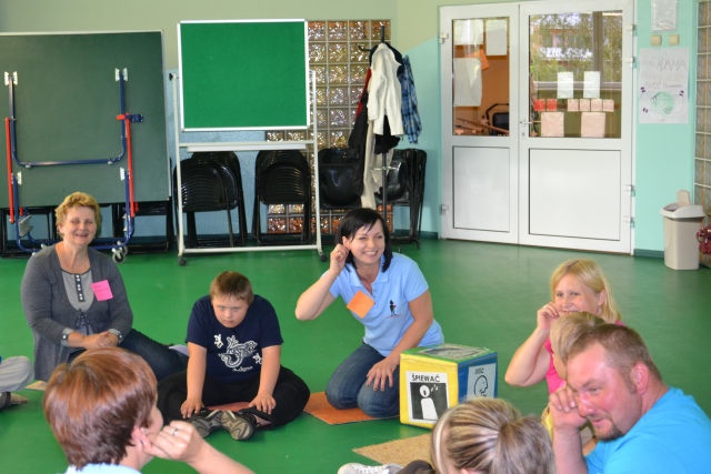 W środę 13 czerwca w ramach projektu „Bardziej aktywni, bardziej sprawni” odbyły się zajęcia warsztatowe dla dzieci (uczniów SZSP) i ich rodziców. Celem zajęć było przybliżenie rodzicom tematu komunikacji alternatywnej i wspomaganej – prezentacja metod wprowadzania systemu znaków graficznych i gestów dzieciom niemówiącym lub, u których mowa rozwinięta jest na niskim poziomie. Temat ważny, gdyż znalezienie sposobu skutecznego komunikowania się to podstawa rozwoju dzieci z niepełnosprawnością intelektualną. Wiele trudnych sytuacji w codziennym życiu ma swoje źródło w tym iż dziecko nie potrafi w zrozumiały, akceptowany społecznie sposób zakomunikować swoich potrzeb. Niezrozumienie przez otoczenie jest źródłem frustracji i prowadzi do izolacji w rodzinie, grupie rówieśniczej i w społeczeństwie. Dlatego tez rozwijanie umiejętności komunikacyjnych to jeden z głównych celów pracy dydaktyczno wychowawczej w naszej szkole. Ze względu na temat warsztatów wzięła w nich grupa dzieci, które podczas specjalistycznych zajęć rewalidacyjno-wychowawczych oraz w codziennych zajęciach dydaktycznych mają wprowadzany system znaków i gestów MAKATON (wybraną w naszej szkole metodę komunikacji alternatywnej).
