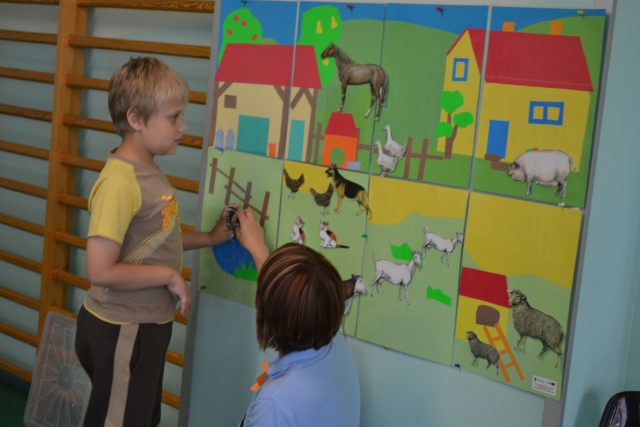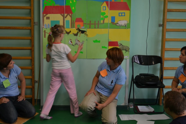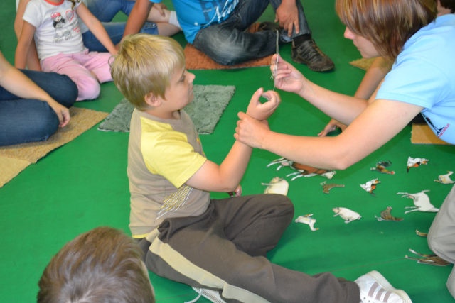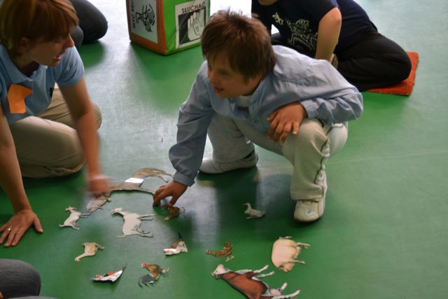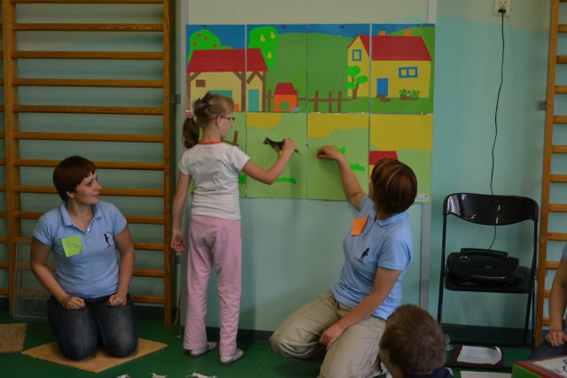 Najlepszym sposobem nauki jest zabawa dlatego też warsztaty miały formę wspólnej zabawy dzieci, rodziców i nauczycieli podczas, której używana była komunikacja alternatywna. W trakcie powitania i „podróży” na wieś i do Afryki – zabawy w jazdę samochodem i lot samolotem, słuchania odgłosów i rozpoznawania zwierząt – dzieci utrwaliły a rodzice poznali kilka gestów i symboli, które mają zastosowanie w codziennym życiu. Rodzice mogli zaobserwować swoje dzieci podczas zabawy z rówieśnikami, dzieci mogły zaprezentować swoje umiejętności. Warsztaty były również okazją do zaprezentowania kilku zabaw, które z powodzeniem mogą zostać przeniesione ze szkoły do domu i umilić wspólnie spędzany czas. Częścią warsztatów był poczęstunek, podczas którego dzieci używając elektronicznych urządzeń do komunikowania się mogły wybrać smakołyki do zjedzenia. Posiłek był również okazją do rozmowy nauczycieli z rodzicami i wymiany doświadczeń. W tym czasie dzieci mogły pobawić się zabawkami edukacyjnymi związanymi z tematem wsi i Afryki. Zakupione na tę okazję stemple, układanki magnetyczne oraz duże tablice do manipulowania cieszyły się dużym zainteresowaniem. Na zakończenie warsztatów rodzice zostali wyposażeni w komplet symboli graficznych, karty z gestami oraz loteryjki obrazkowe i nagranie odgłosu zwierząt do wykorzystania podczas zabawy w domu.