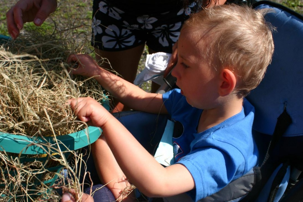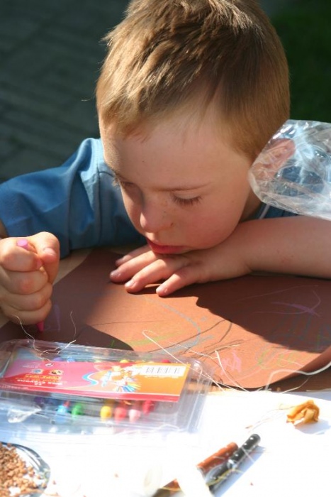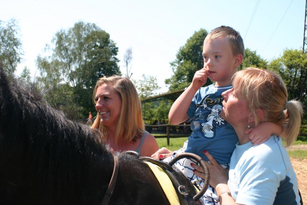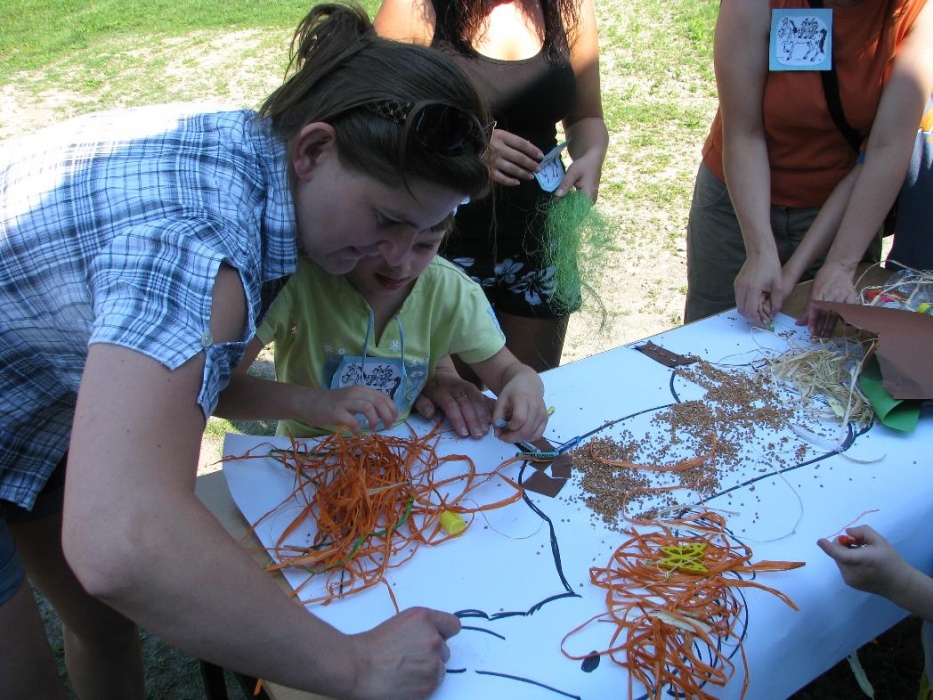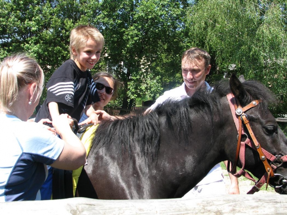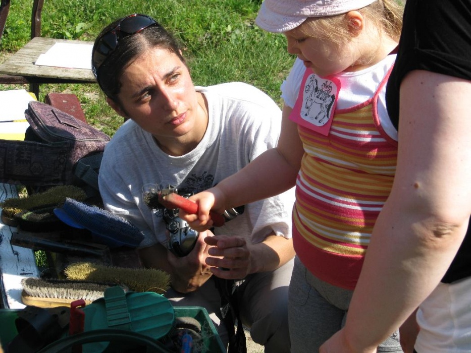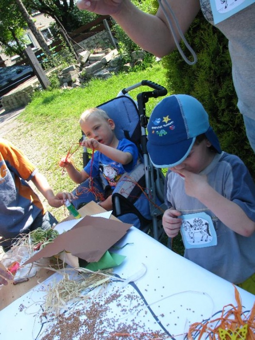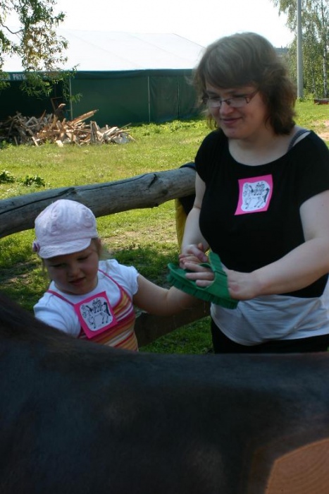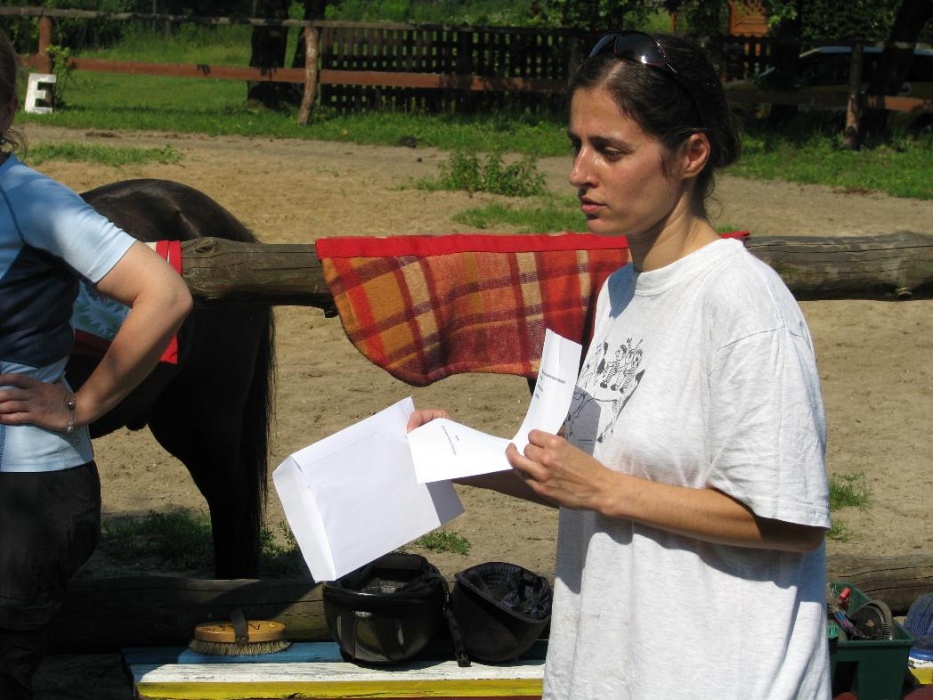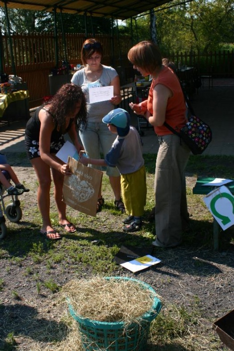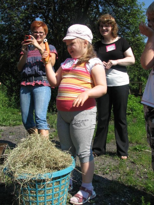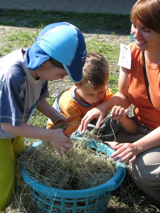 W miniony poniedziałek (18 czerwca) w ramach podsumowania udziału w zajęciach hipoterapii przedszkolaki, wraz ze swoimi rodzicami/opiekunami, wzięły udział we wspólnej zabawie i grillu na terenie ośrodka. Do zabawy przyłączyła sie również jedna z klas I SP. Hipoterapuci przygotowali mini "Podchody Końskie". Dzieci, ich rodzice, a także wychowawcy, zostali podzieleni na grupy, dostali instrukcje jak odszukać kolejne wskazówki i zadania do wykonania. Wśród nich było wyklejenie portretu konia, czyszenie zwierzęcia z doborem odpowiednich przyrządów, odszukanie w sianku końskich przysmaków oraz przygotowanie prezentu dla konika. Wszystkie drużyny świetnie poradziły sobie z zadaniami, a końskie portrety zostały ocenione przez Adasia jako "bardzo smaczne":).