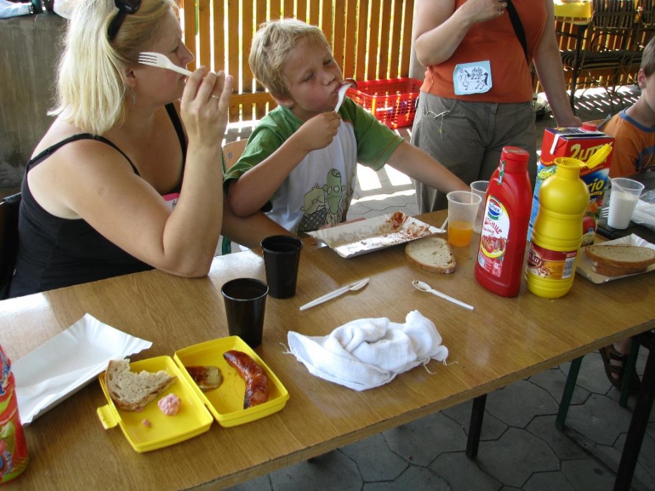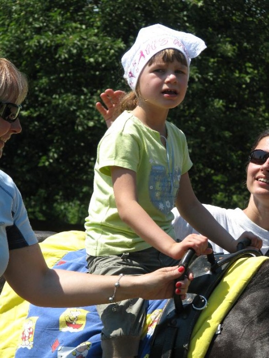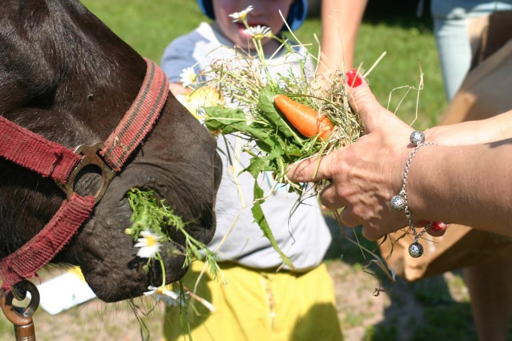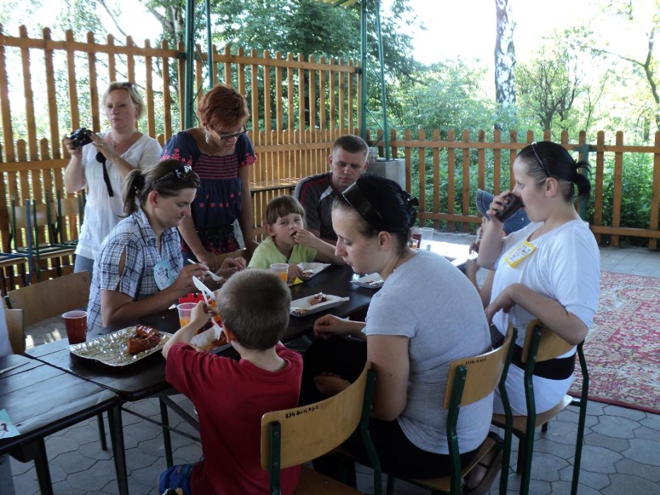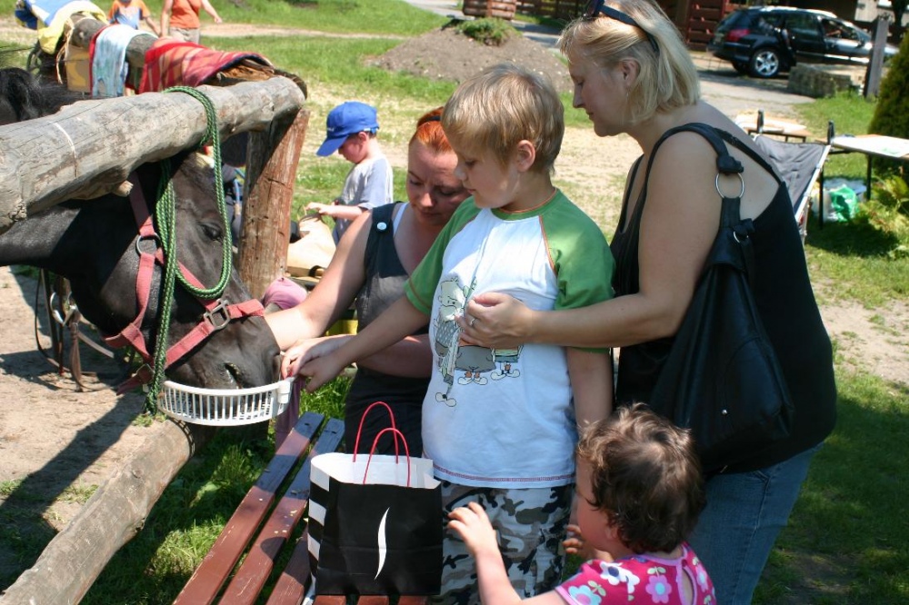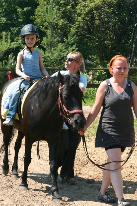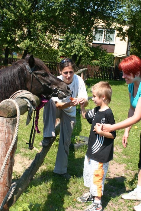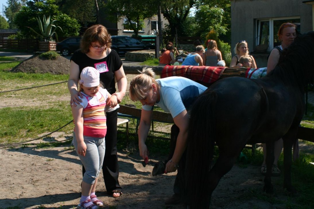 W nagrodę na wszystkich czekały grillowane kiełbaski i pyszne ciasto. W czasie, gdy jedne dzieci "grillowały", inne prezentowały swoim rodzicom zdobyte umiejętności jeździeckie. Na zakończenie dzieci w podziękowaniu nakarmiły konika i pożegnały go, ale nie na długo, bo tuż po wakacjach, będą przecież kontynuować zajęcia z konikami.