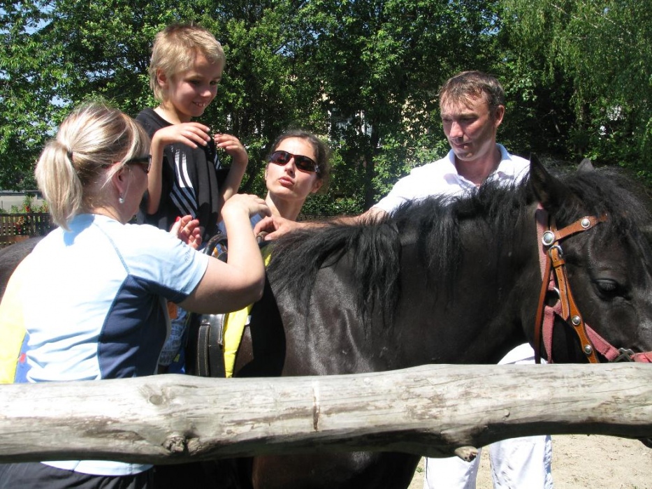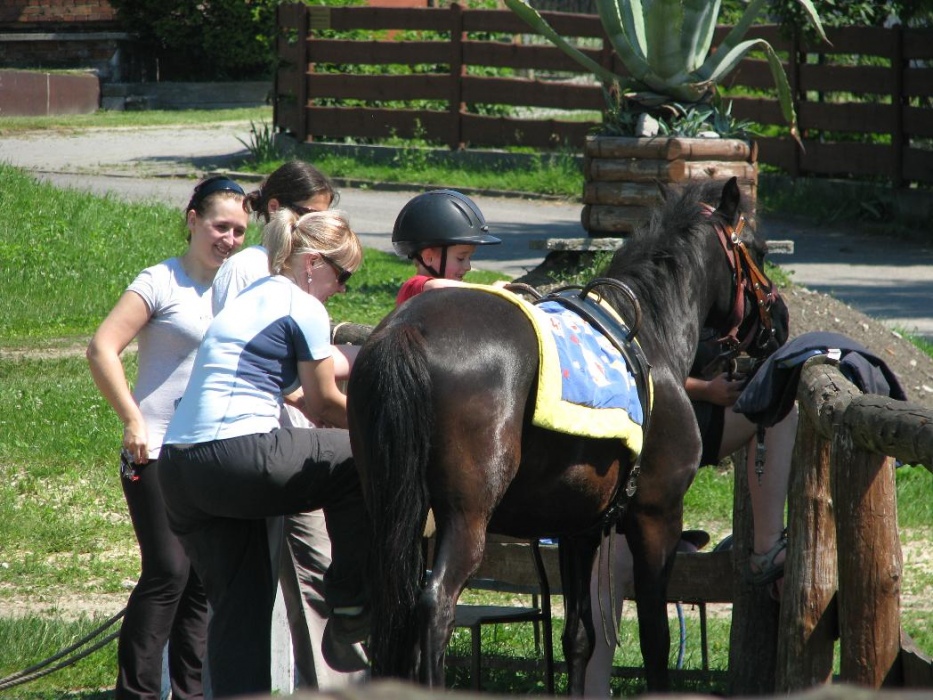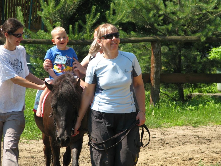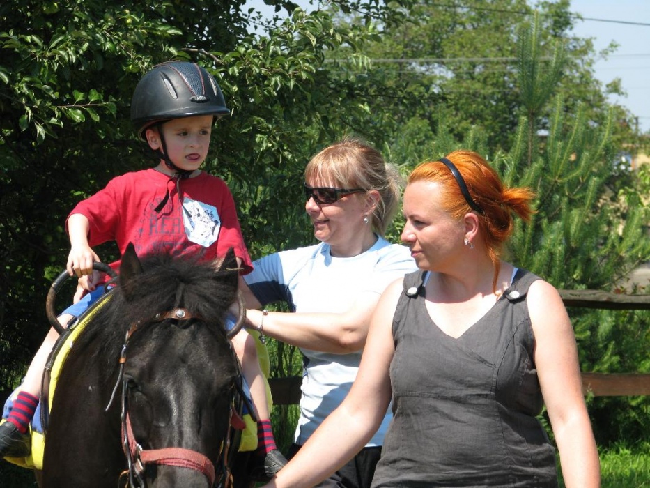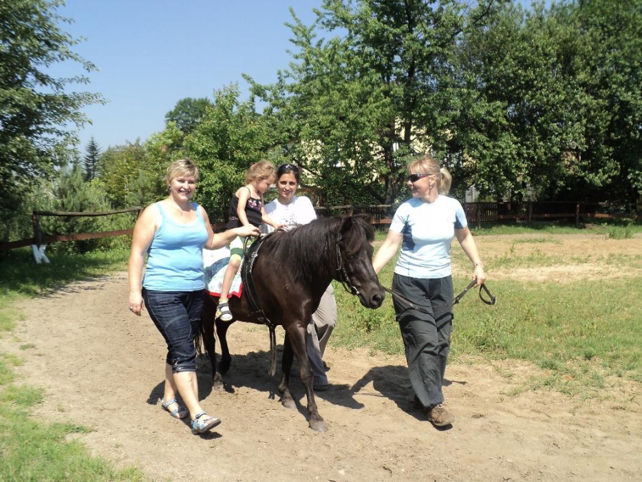 Kolejny rok nasze przedszkolaki miały możliwość udziału w cotygodniowych zajęciach specjalistycznych z zakresu hipoterapii. Zajęcia odbywały się w o ośrodku hipoterpii, gdzie od wielu lat nasza placówka realizuje tą formę terapii. Pod okiem instruktorów hipoterapii najwspanialsi terapeuci: konik Adaś, Remik i Kajtek pomagały naszym maluchom rozwijać swoje umiejętności ruchowe, społeczne, komunikacyjne. Na zajęcia każdorazowo wyjeżdżała grupa dzieci. Podcza,s gdy jedne brały udział w zajęciach na koniu, inne w oczekiwaniu na swoją kolej, miały okazję poznać najbliższe otoczenie koników (ogród, łakę, stajnię, inne zwierzęta). Podczas spacerów po okolicy dzieci mogły rownież obserwować zmiany zachodzące w przyrodzie, gdy zmieniały sie pory roku.