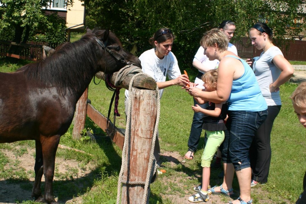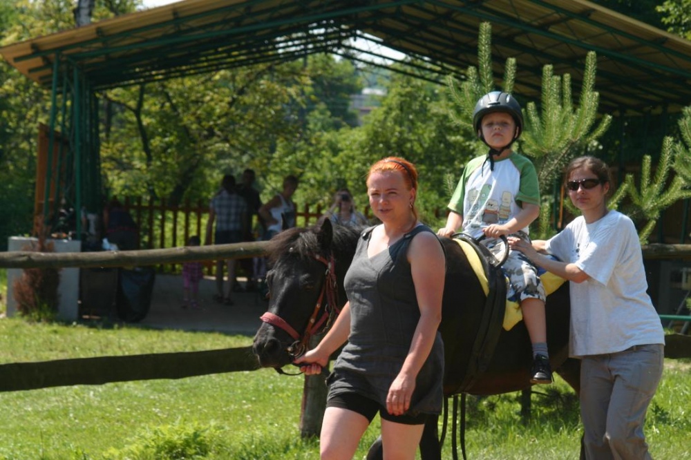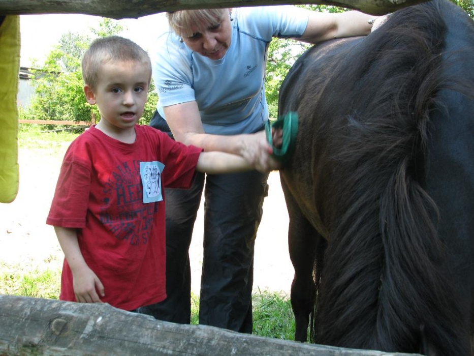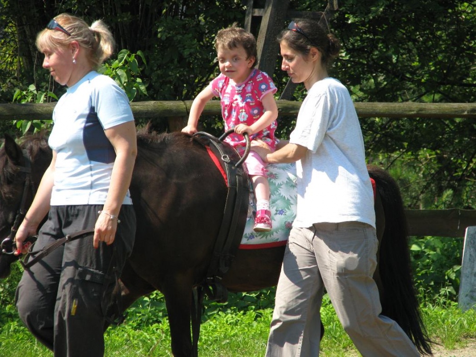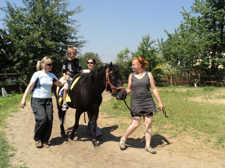 Kolejny rok nasze przedszkolaki miały możliwość udziału w cotygodniowych zajęciach specjalistycznych z zakresu hipoterapii. Zajęcia odbywały się w o ośrodku hipoterpii, gdzie od wielu lat nasza placówka realizuje tą formę terapii. Pod okiem instruktorów hipoterapii najwspanialsi terapeuci: konik Adaś, Remik i Kajtek pomagały naszym maluchom rozwijać swoje umiejętności ruchowe, społeczne, komunikacyjne. Na zajęcia każdorazowo wyjeżdżała grupa dzieci. Podcza,s gdy jedne brały udział w zajęciach na koniu, inne w oczekiwaniu na swoją kolej, miały okazję poznać najbliższe otoczenie koników (ogród, łakę, stajnię, inne zwierzęta). Podczas spacerów po okolicy dzieci mogły rownież obserwować zmiany zachodzące w przyrodzie, gdy zmieniały sie pory roku.