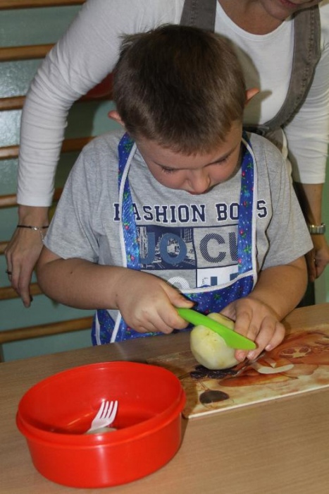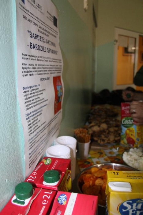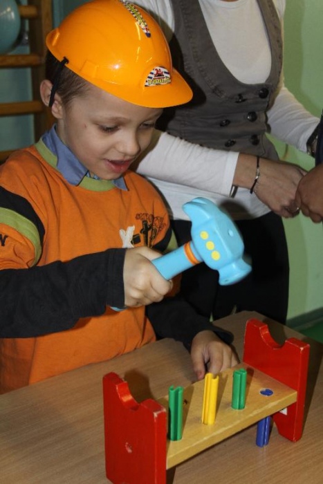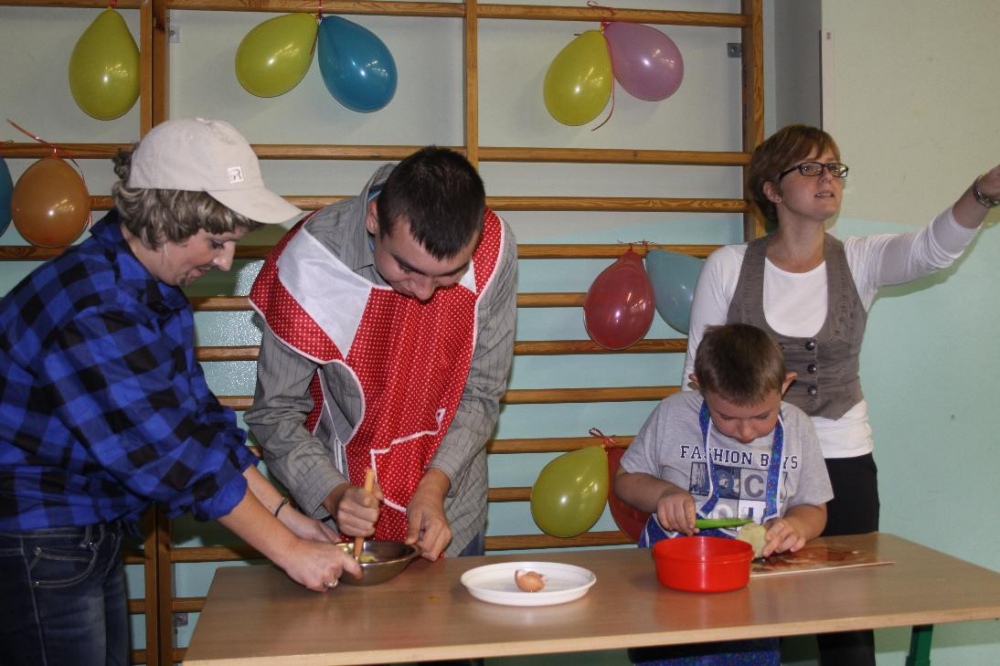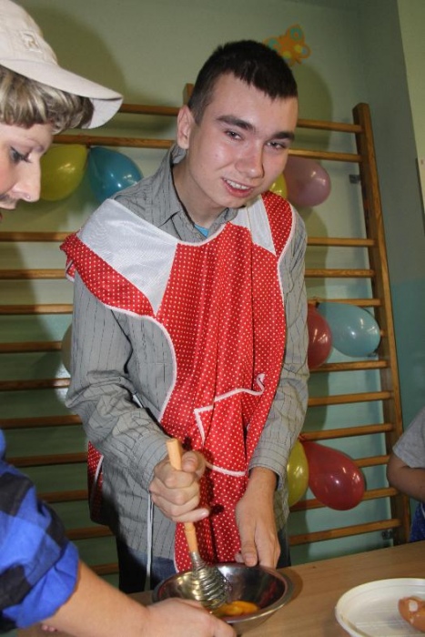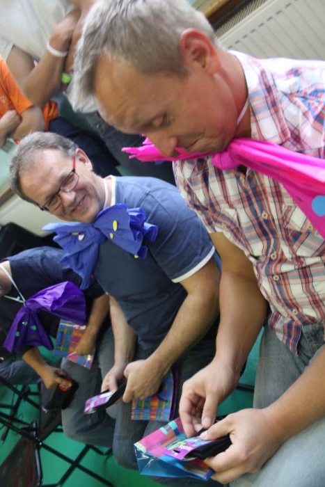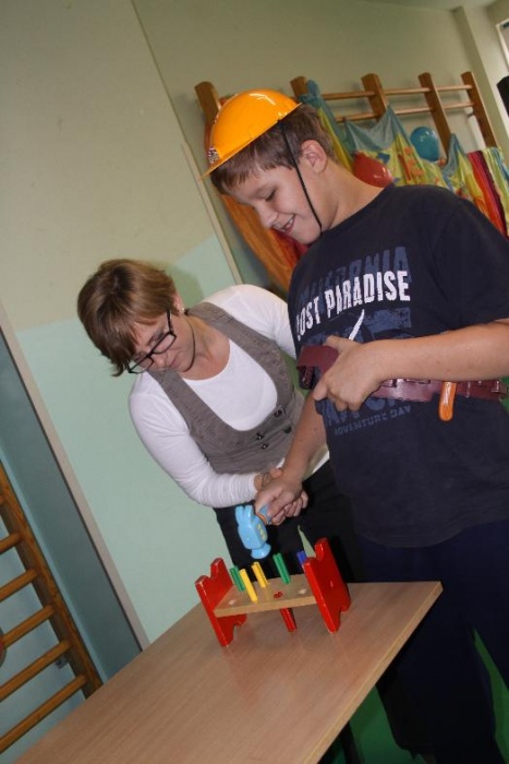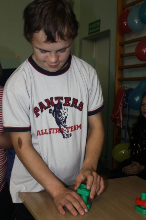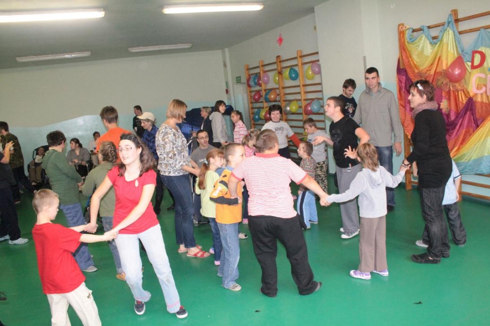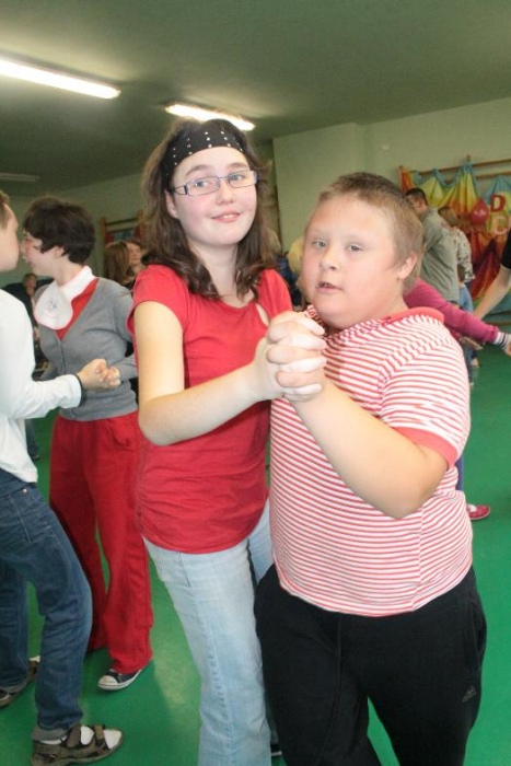 Świetnie radzili sobie w pracach porządkowych (układanie ubrań ,zamiatanie śmieci). Chłopcy biorący udział w zabawach otrzymali „złotą rączkę”, jako symbol ich zaradności. Impreza zakończyła się dyskoteką połączoną ze słodkim poczęstunkiem.