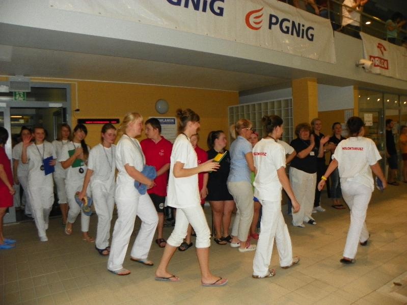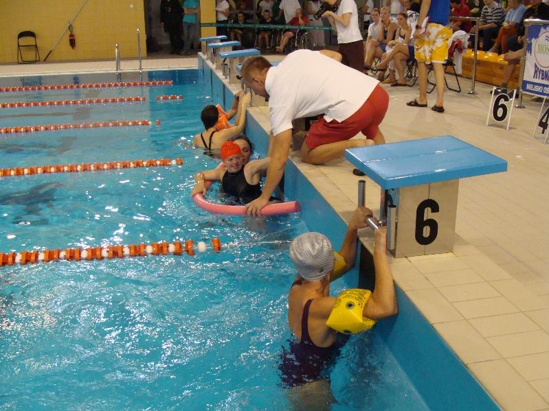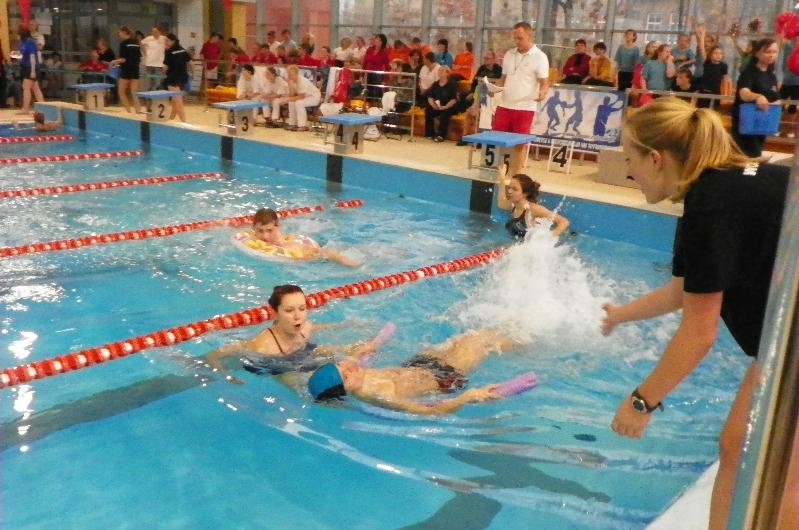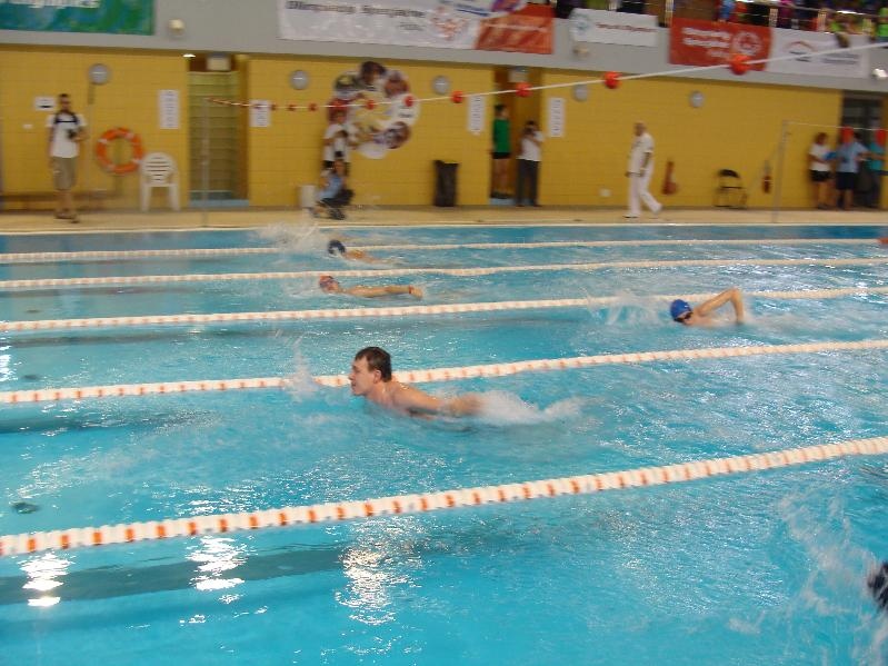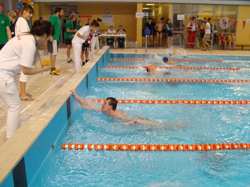 Po części oficjalnej rozpoczęła się część sportowa – ta najbardziej wyczekiwana przez zawodników. Rywalizację rozpoczęły konkurencje 15m ze sprzętem lub/i ze wspomaganiem. Potem na dłuższych dystansach – 25m, 50m, 100m pływacy rywalizowali w stylach dowolnym, klasycznym, motylkowym oraz grzbietowym. Zwieńczeniem zawodów były dwa bardzo pokazowe i emocjonujące wyścigi sztafet 4x25m stylem dowolnym. Będąca gospodarzem S.T. „Promyk” również wzięła w nich udział z wymarzonym rezultatem: srebrnym i złotym medalem!!!