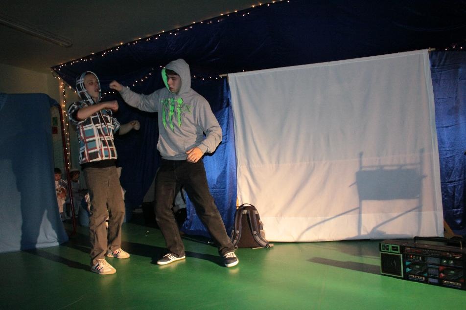 Zgodnie z tradycją szkolny zespół wokalno – teatralny ,,Baj” przygotował z okazji Świąt Bożego Narodzenia przedstawienie jasełkowe. Treść tej szczególnej inscenizacji przedstawia historię narodzenia Pana Jezusa w Betlejem, połączoną z wątkami odwołującymi się do aktualnych spraw, mających miejsce w naszym codziennym życiu.