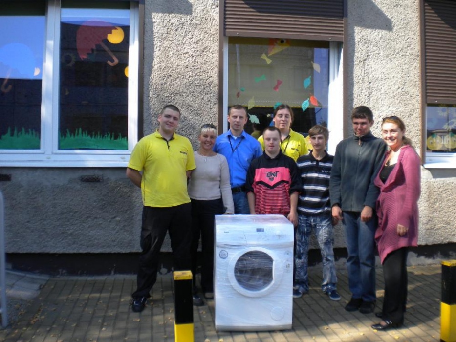 Miło nam poinformować, że w dniu 21 września 2010 nasza szkoła została wyposażona w nową pralkę, ufundowaną przez pracowników Marketu Media Expert z Wodzisławia Śląskiego. Pragniemy w tym miejscu podziękować wszystkim pracownikom, a szczególnie kierownikowi sklepu Panu Dariuszowi Brachmańskiemu.